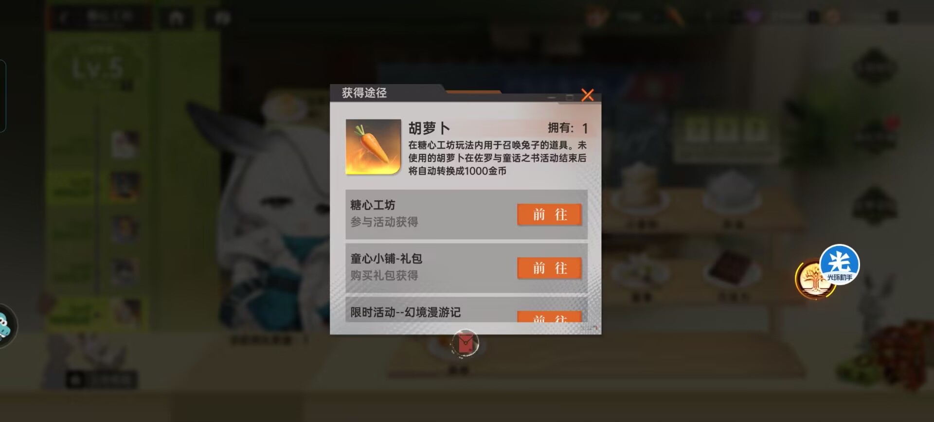 2:【糖心工坊】攻略。本次端午活动的核心玩法,通过【胡萝卜】来召唤兔子获得对应的工坊奖励。