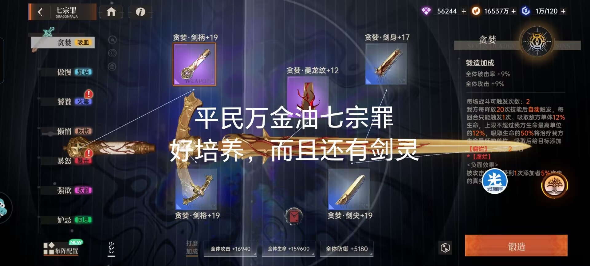二:【七宗罪】打磨锻造培养优先级总结。1:平民最值得优先培养:打磨锻造的七宗罪。