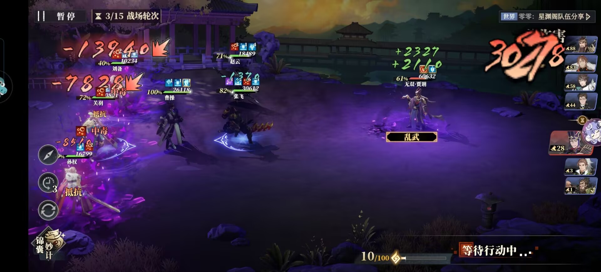 也是一种思路,不过很吃战意!不像春华那种可以无限连,而且赵云和关羽的练度要高,不然都做不到收割。