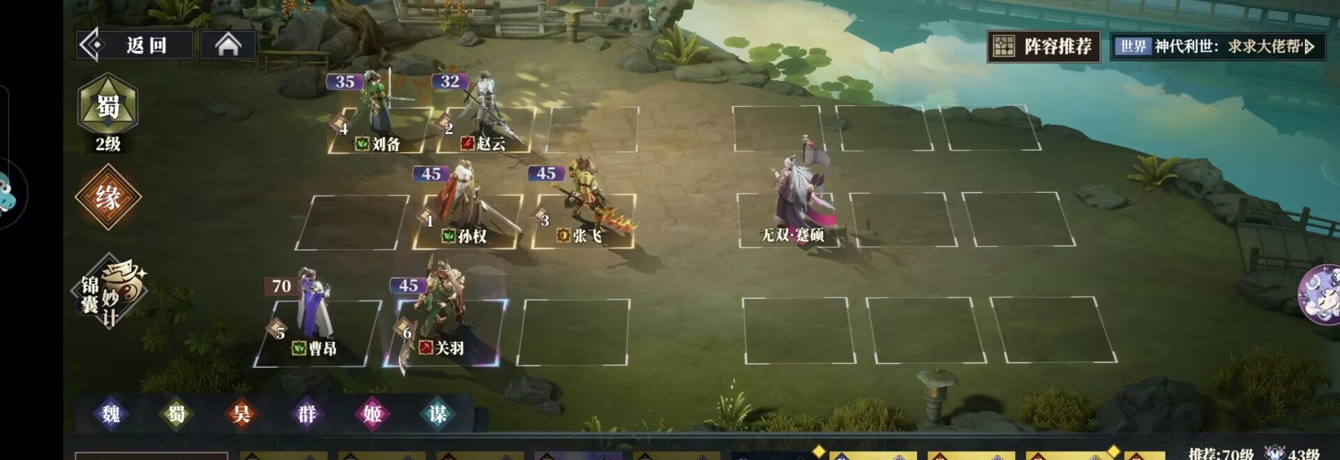 本期给大家带来的是平民玩家【牢蜀】通关无双副本的一些思路。