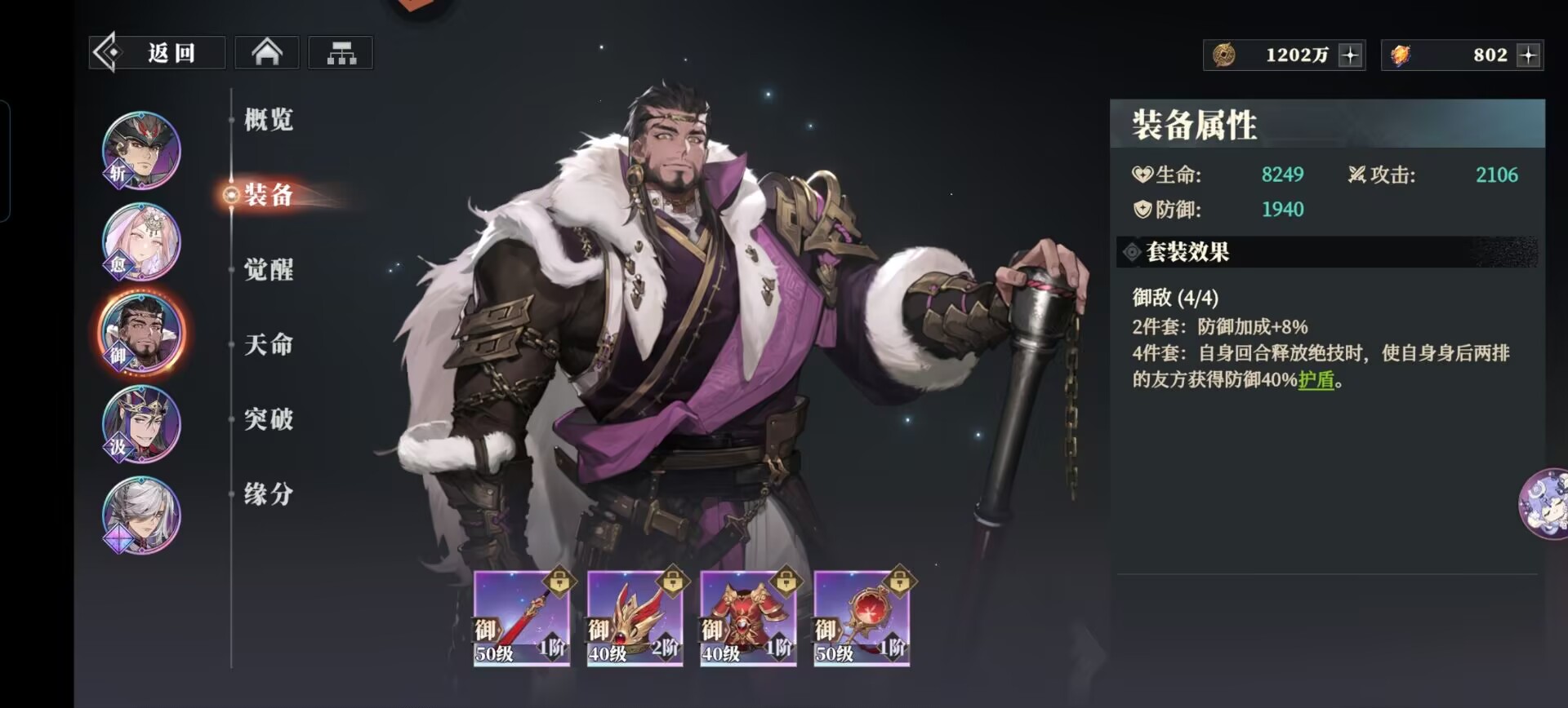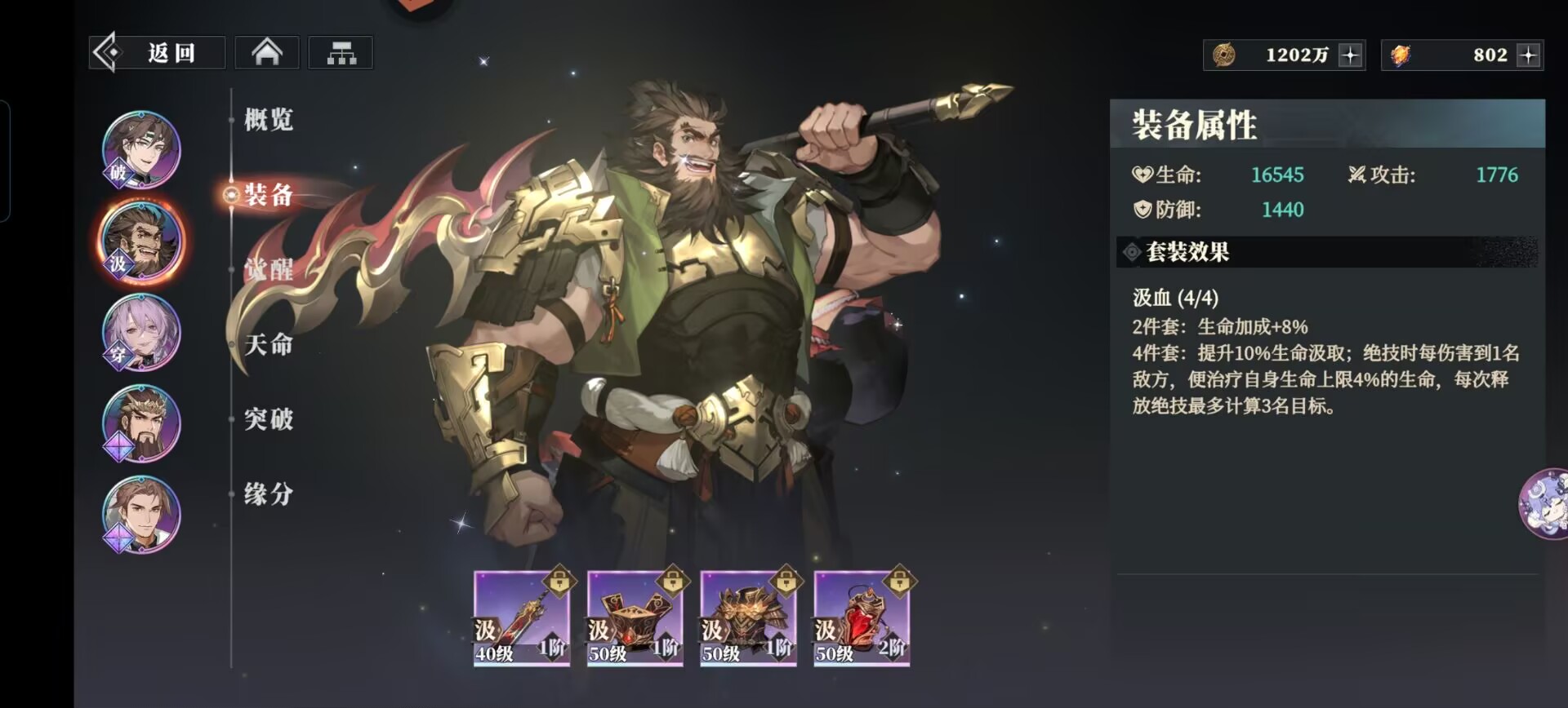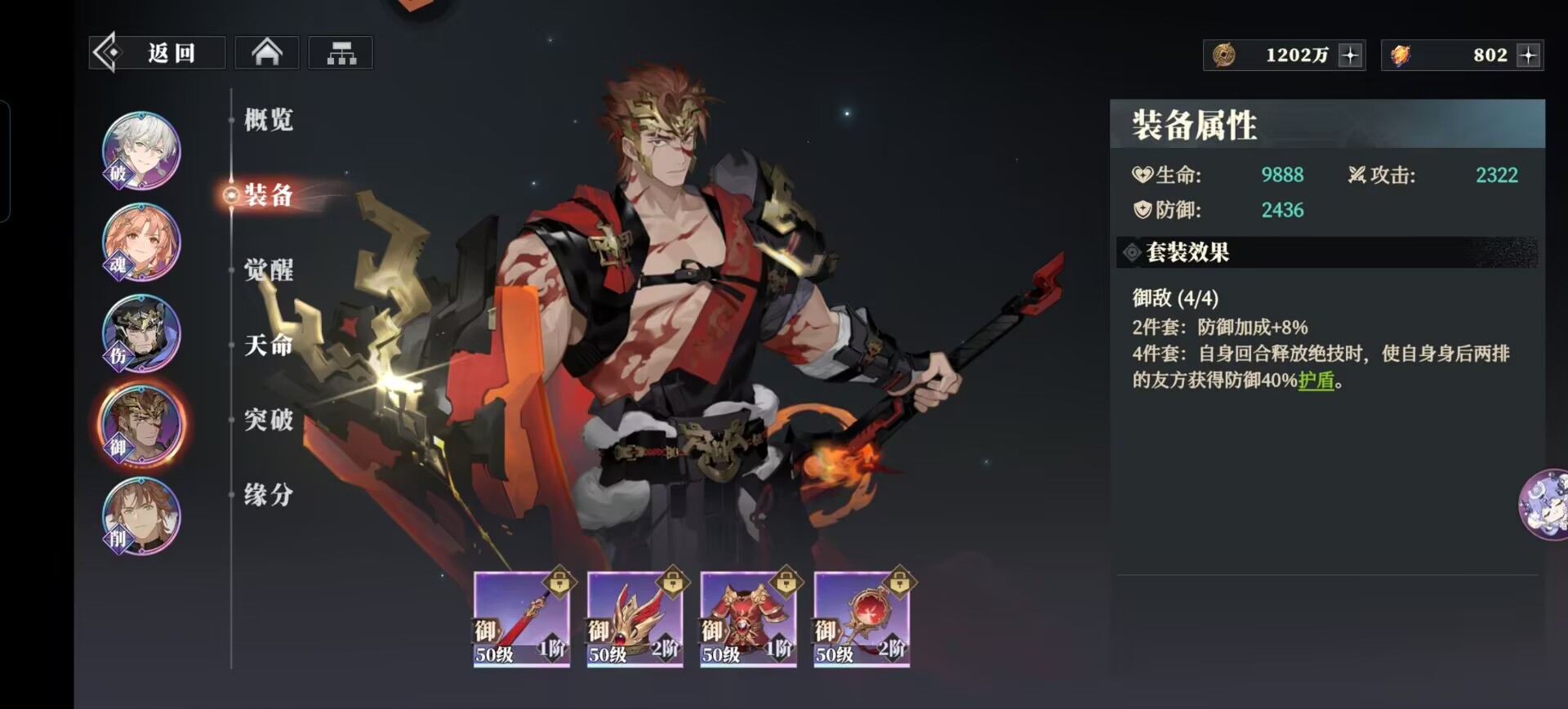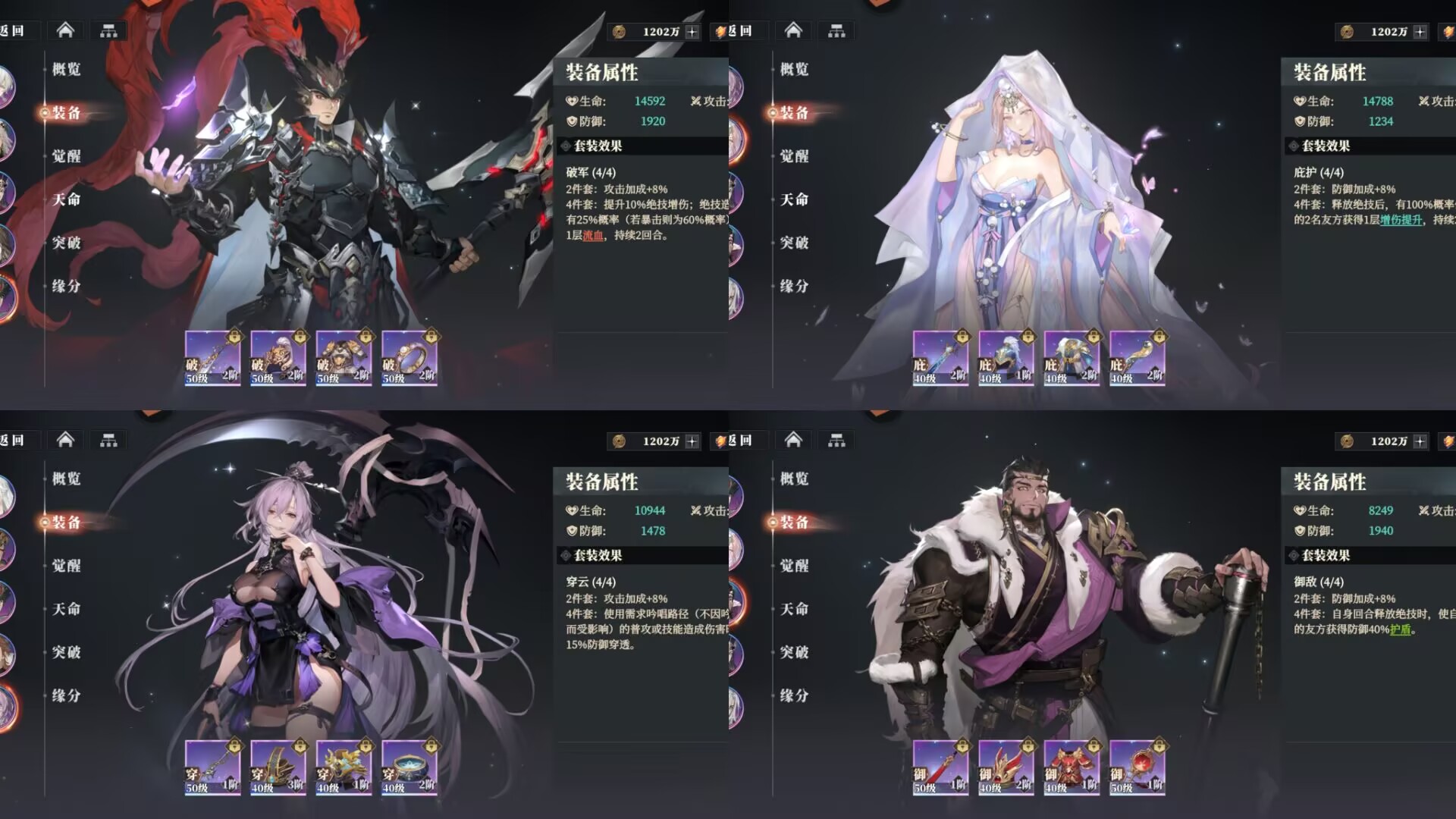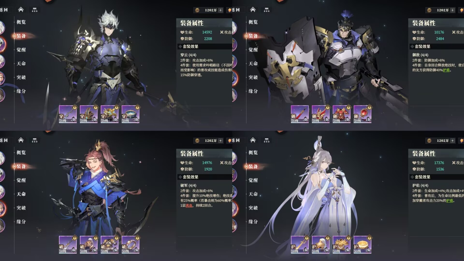 破军套:能够提升关羽攻击和绝技伤害,暴击后可以额外附加流血效果,很契合关羽高暴击的武将设定,能够极大发挥出这套装备的优势。