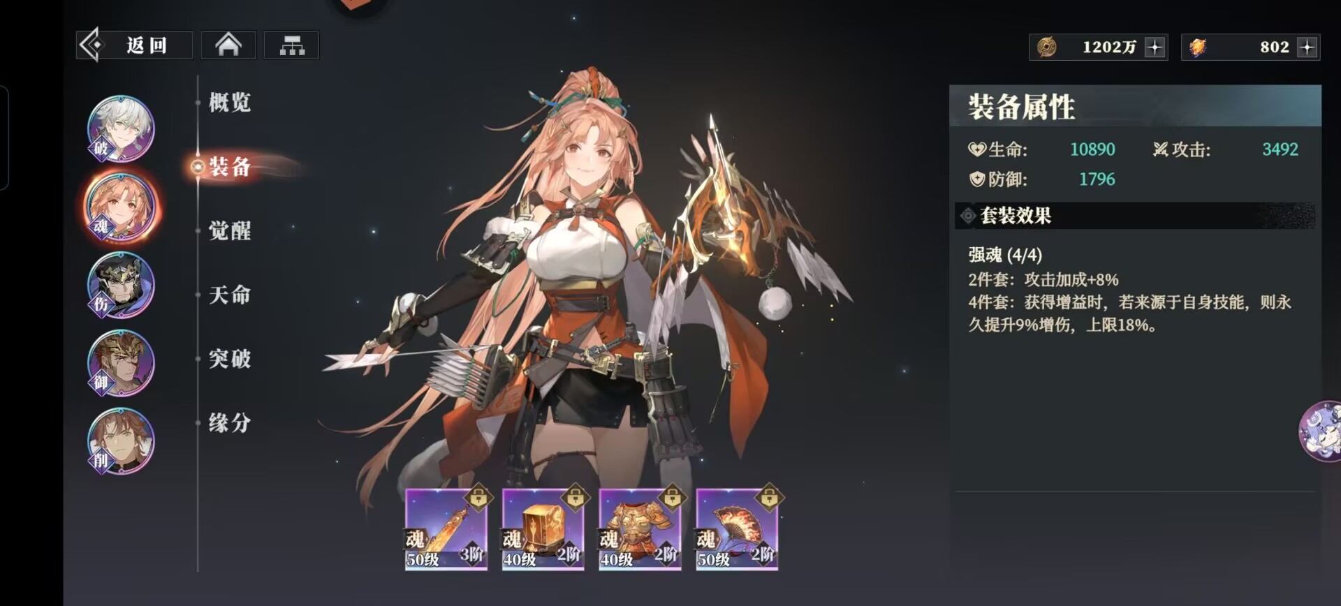 强魂套:提升香香攻击,同时香香只要自身获得增益就可以增伤,很符合孙尚香始释放技能后给自己上增益的设定,完美契合香香的装备。