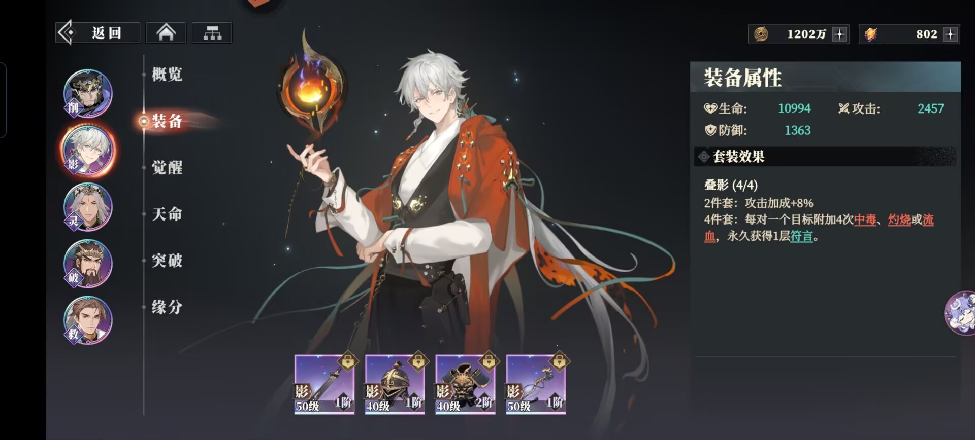 叠影:提升陆逊灼烧伤害,加强自身的输出,是陆逊首选最佳装备。