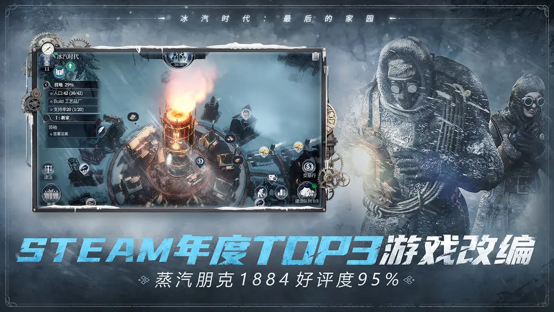 《冰汽时代:最后的家园》是根据STEAM年度销量前3游戏改编的末世城市生存经营手游。