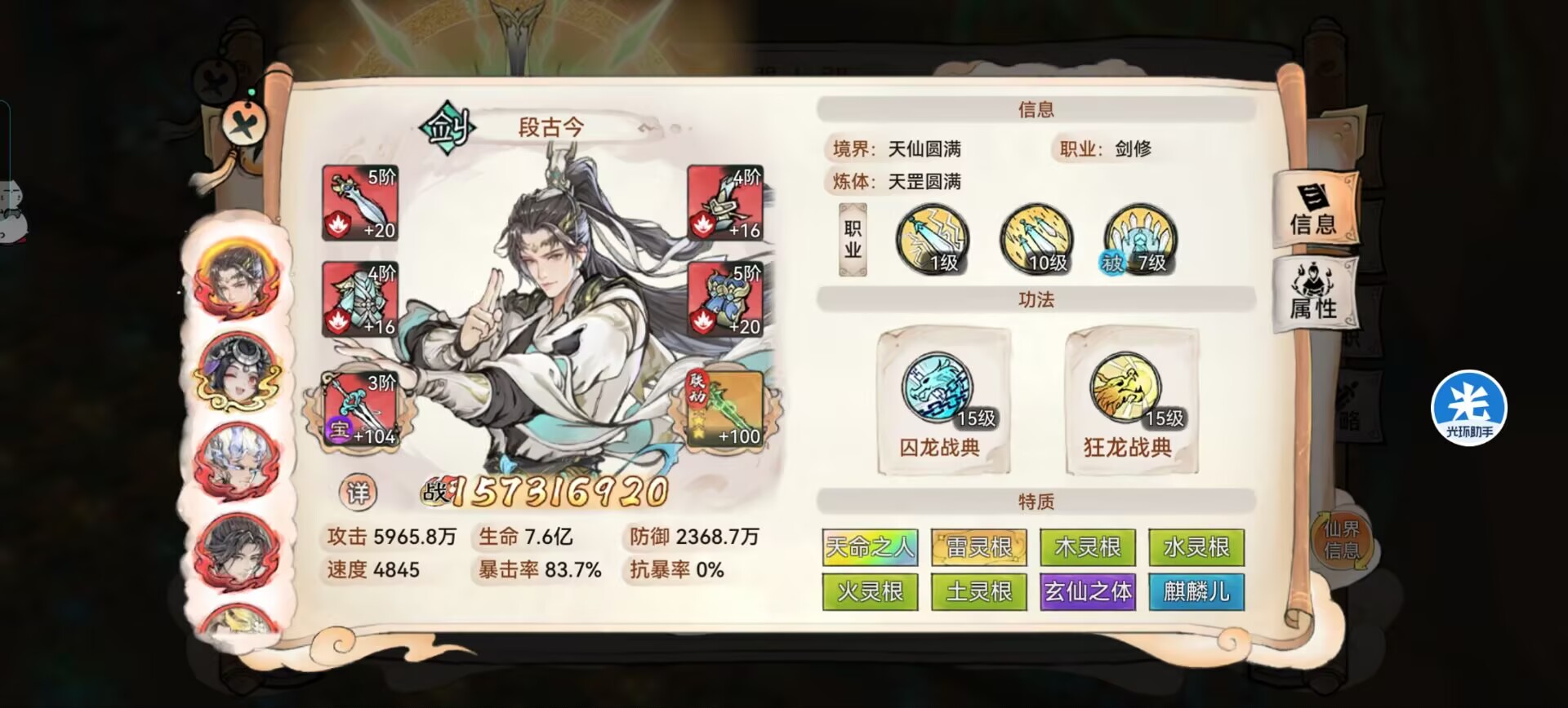 ②这套阵容只适合老区的骨灰级玩家去玩,最好是一定氪度的老玩家,因为这类玩家仙缘弟子多,配件方面又比较齐全!容易搭配和成型!而且就算这个阵容不理想实战不符合自己的要求或者阵容被淘汰,也可以去转换变化阵容。