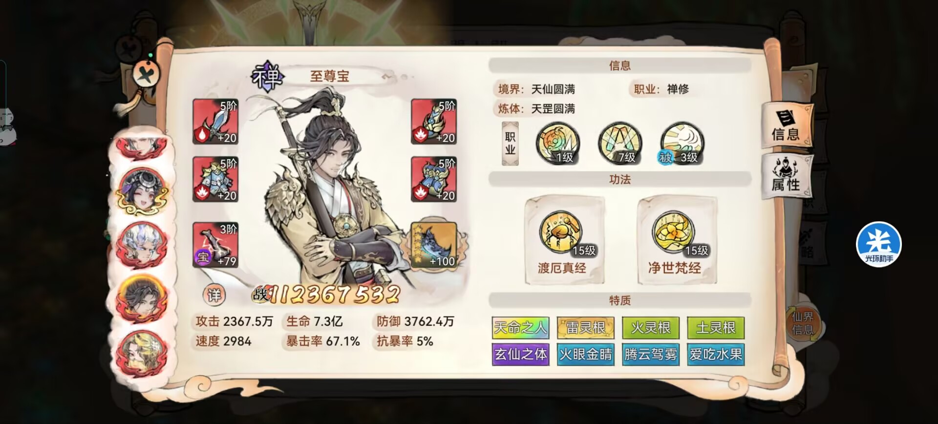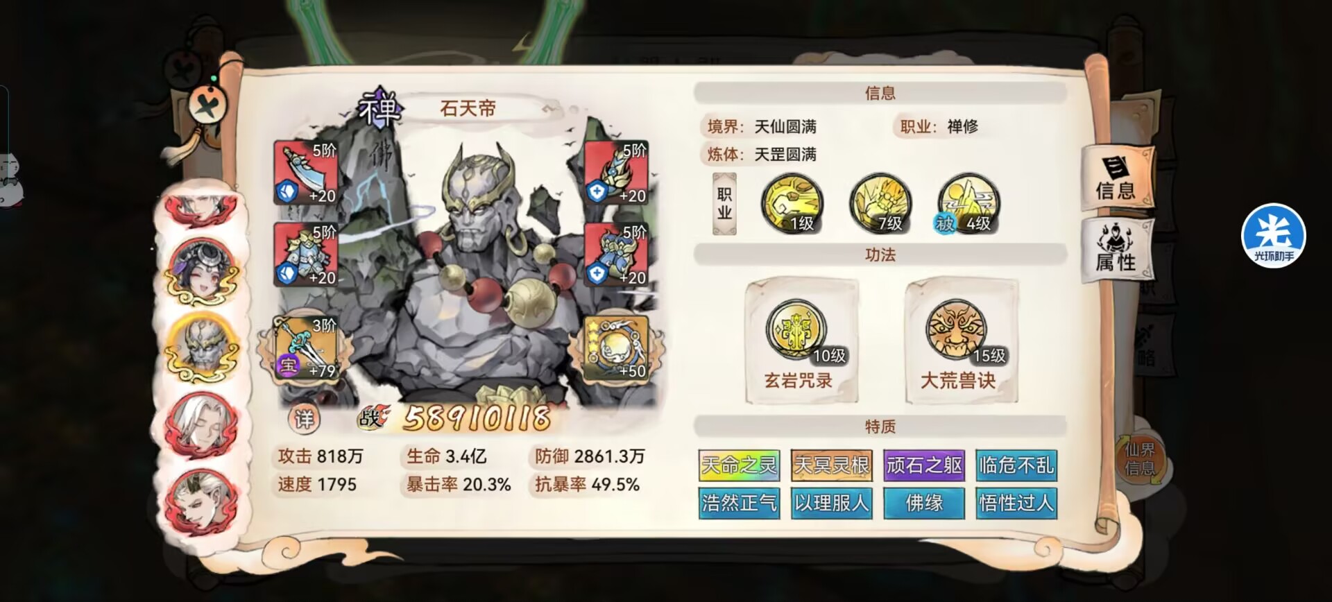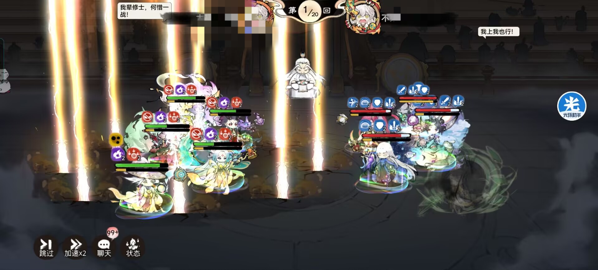 而且一定要高速,尽量推到5000-6000速度,可以没有对面画师快,但是一定要比韩立快,不然一切就百搭了,先给我方拉buff和驱散负面+免疫负面的效果,建立对局优势。