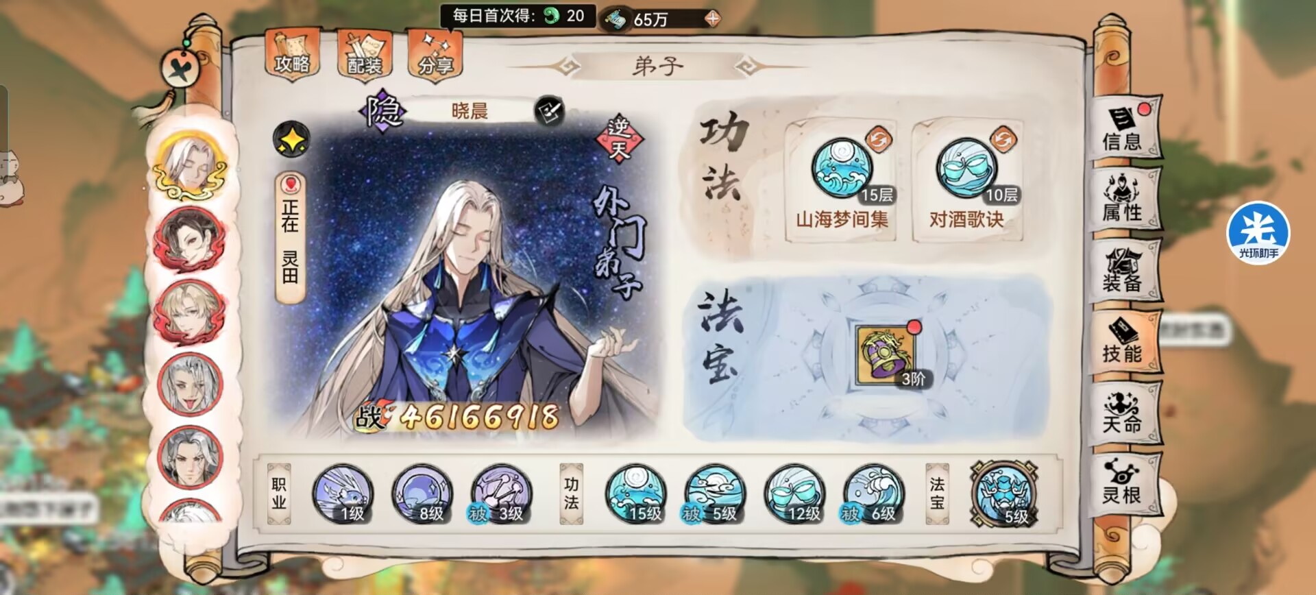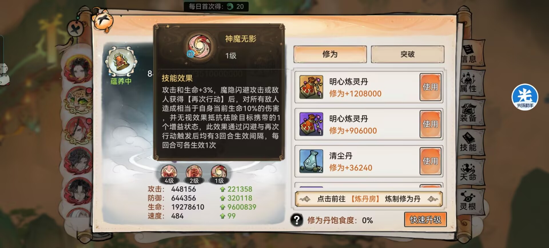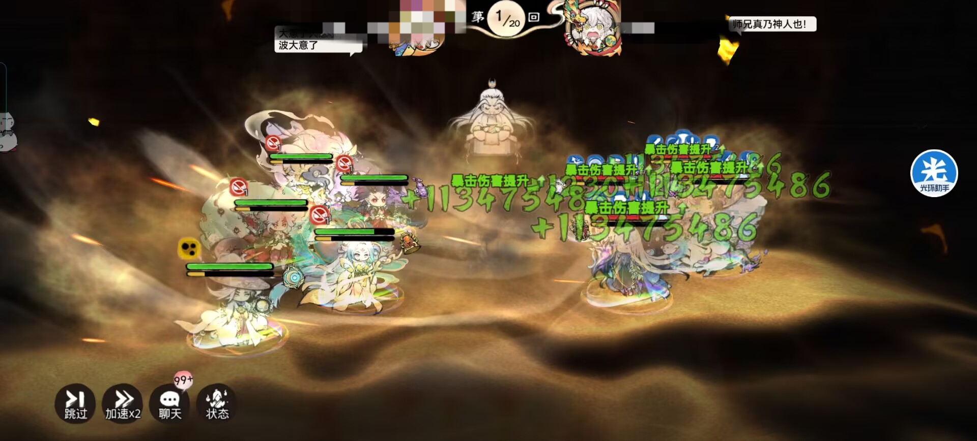 而且一定要高速,尽量推到5000-6000速度,可以没有对面画师快,但是一定要比韩立快,不然一切就百搭了,先给我方拉buff和驱散负面+免疫负面的效果,建立对局优势。
