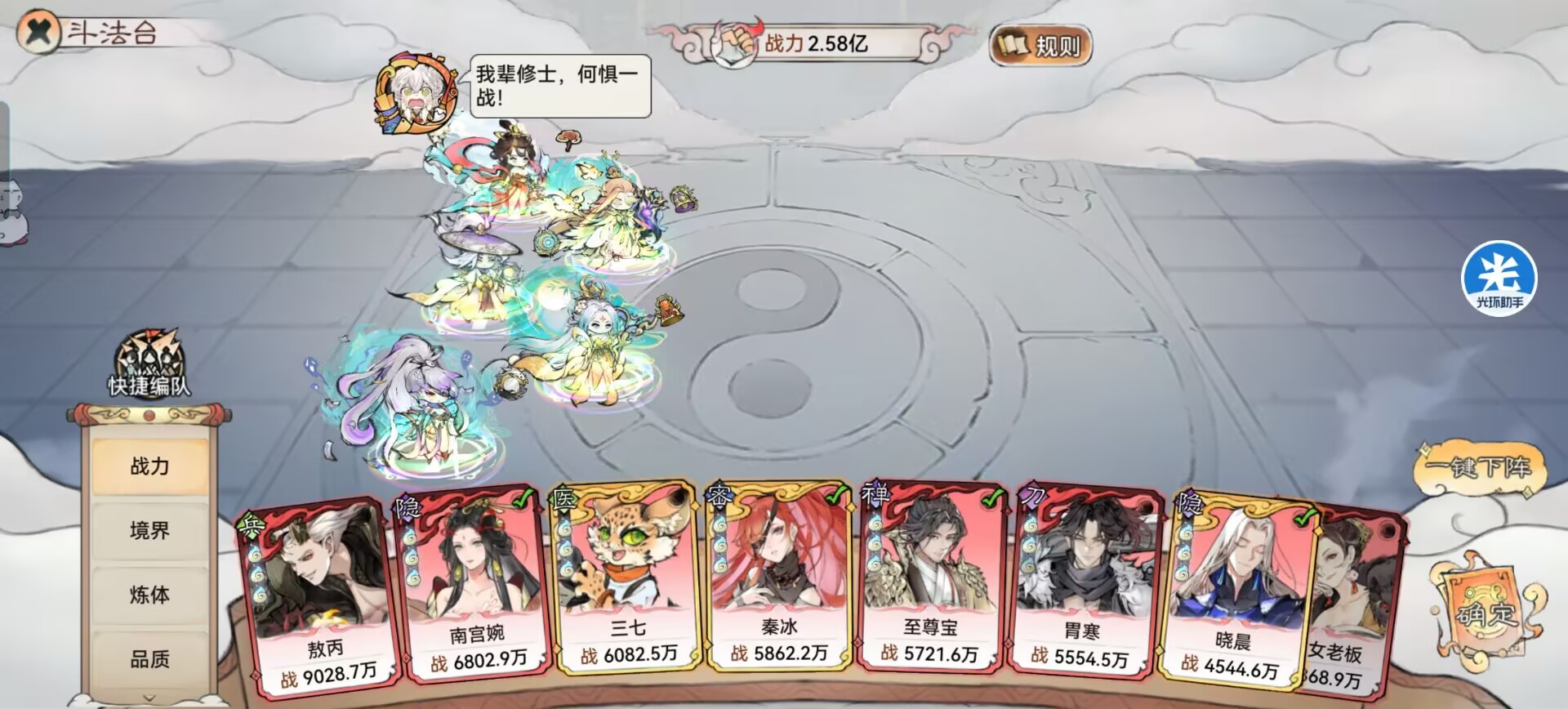 首先说下这套阵容的优点和玩法思路:众所周知!速攻阵容折磨的地方就在于速度快画师先手上buff然后给我们全体禁增,让我们所有效果都失效,包括秦冰的反射也失效了。