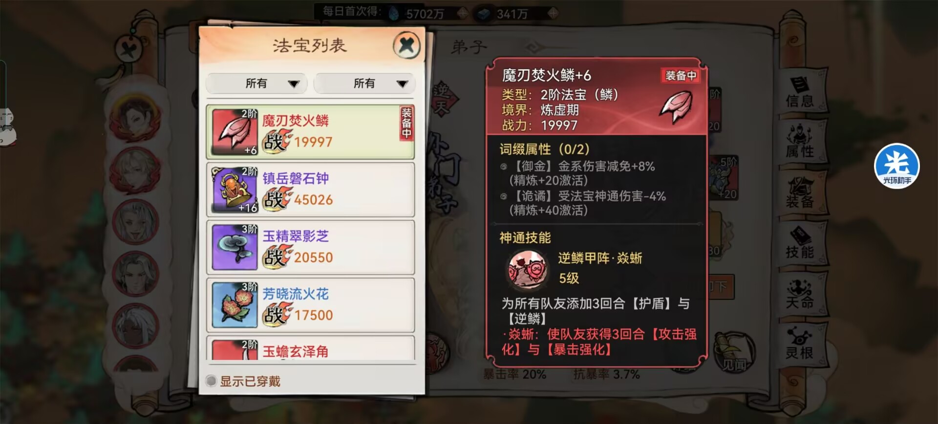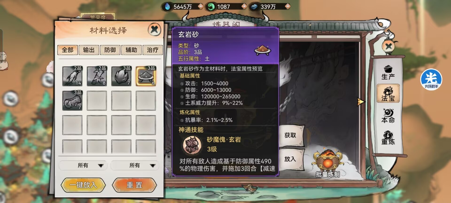 四:【反韩立阵容】法宝炼化需求。