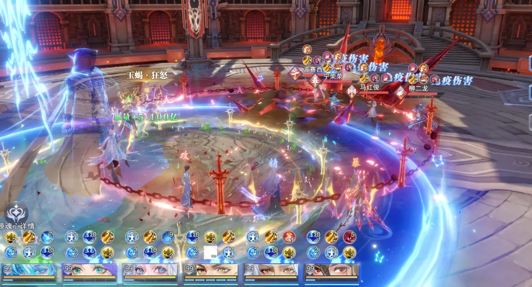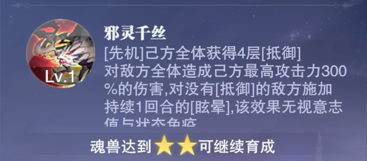 然后关键来了,每个不同的神兽都会包含一个特殊的技能,这个技能包含了攻击、限制、增伤、控制等等效果,但无论如何都会包含一个“先机”的给予我方全体魂师一定层数“抵御”的效果,而整个神兽系统最不可思议的便是这个“抵御”状态。