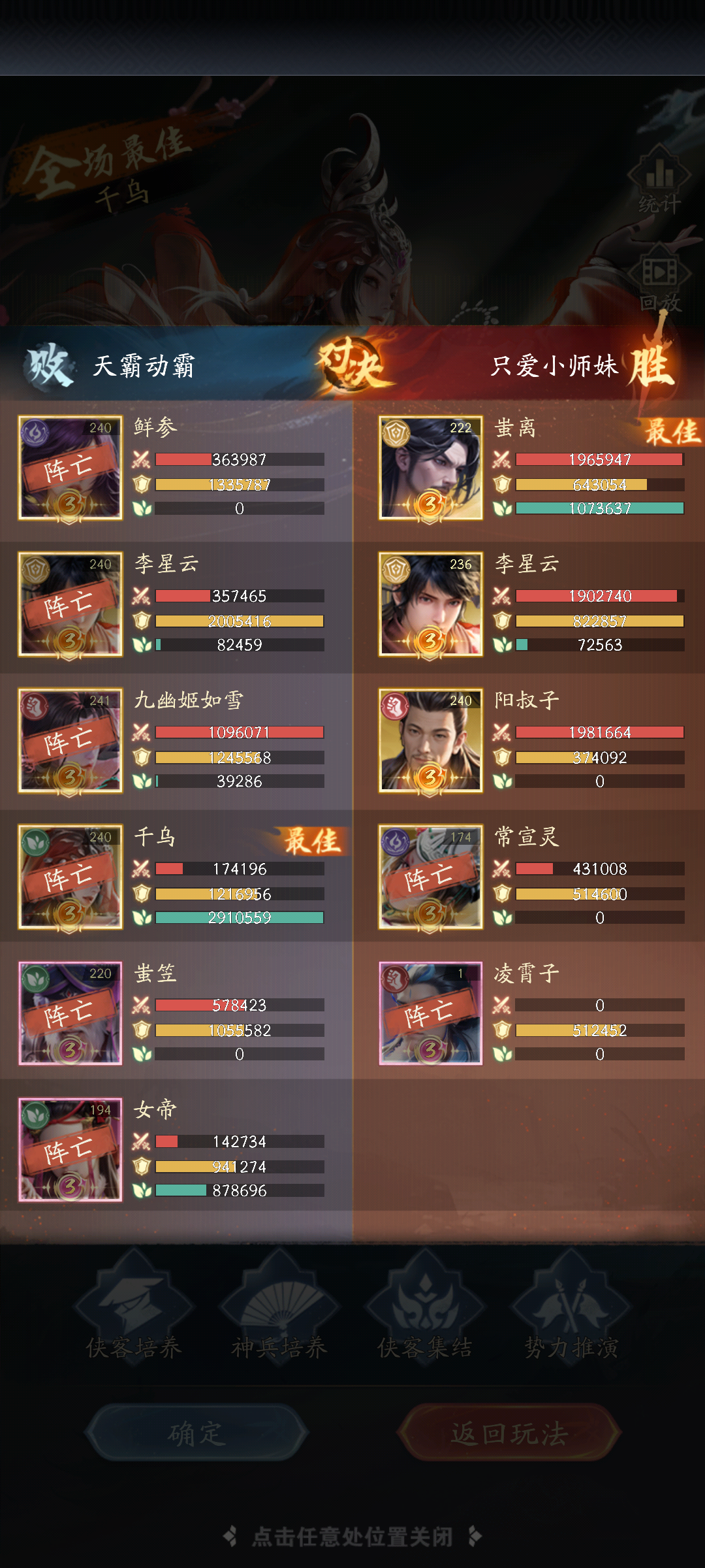 教你如何横跨六十万战力五打六lucky8eNKZ发布于 06-07关注 不是这游戏是看人数还是看战力,我两百四十万打他一百九十万,九游姬如雪跟刮痧一样,除了大招秒了个一级的,剩下的大招连李星云的盾都打不碎啊,纯搞笑吗这不