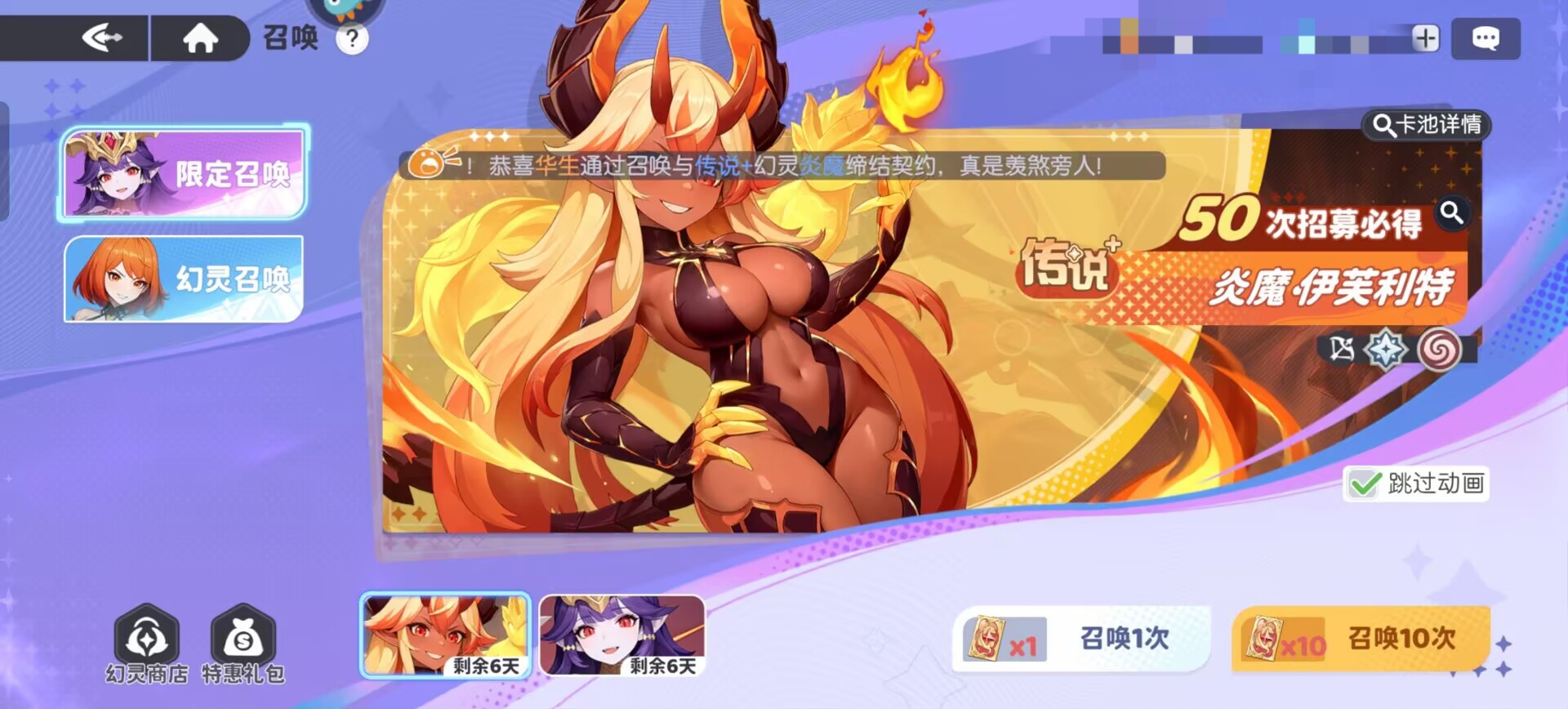 ③新服第一个限定卡池【炎魔:伊芙利娜】也是适配元素队的。