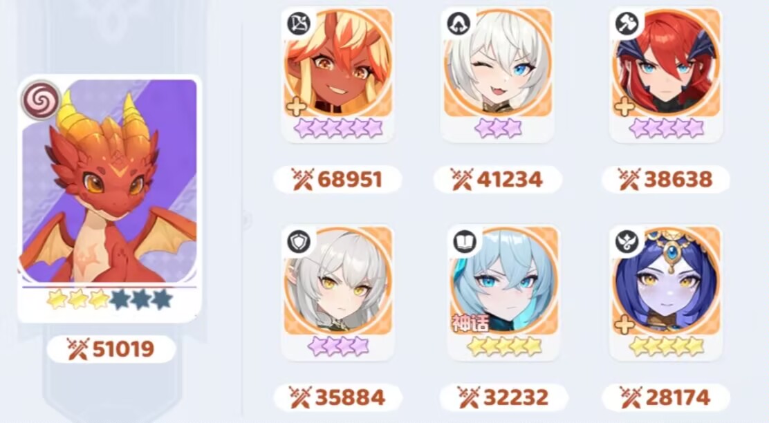 解析:这套阵容前期开荒非常好用,首先全部角色是比较容易获取的,在前期可以快速组成。