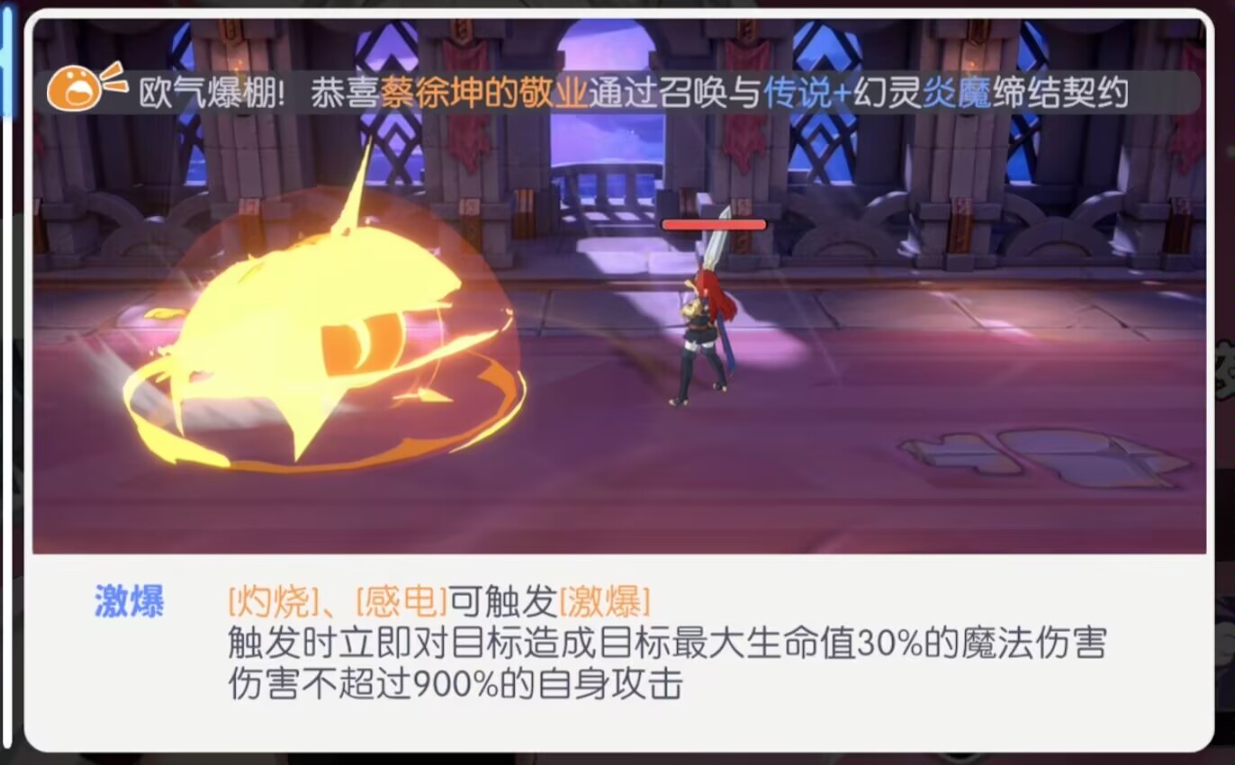 比如:当敌人受到灼烧+感电的状态以后,可以立刻触发【激爆】效果。