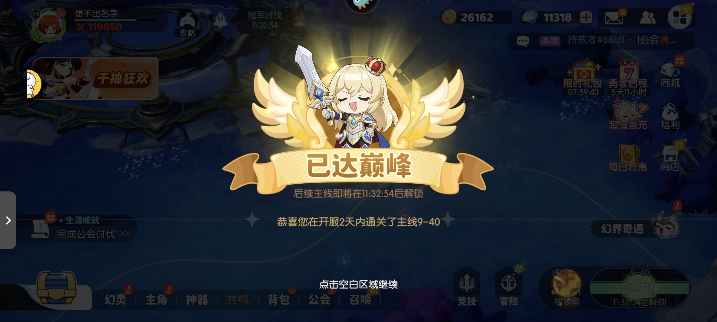 ①冠军讨伐(第二天主线达到要求第三天开启)