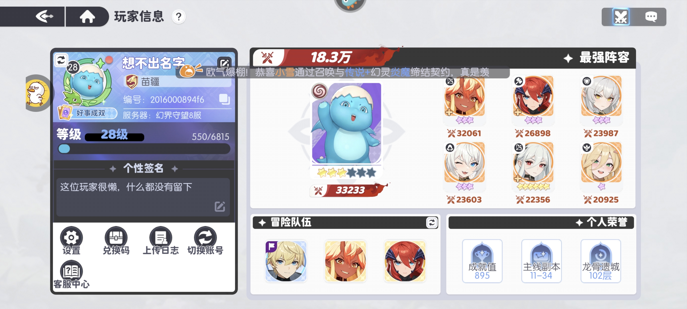 完成第三天任务&转盘+奶龙转盘+公会boss挑战+首充礼包领取获取培养资源,先将仲夏夜之梦(七日转盘获取本体)和魅夜之狩(首充赠送本体)升至粉三星,同时奶龙转盘四圈可以将暴暴龙升至三星,进行神器装备和主角进阶战力可以达到18万+,主线副本可以达到11-30+,此时主线副本可能会稍稍吃力
