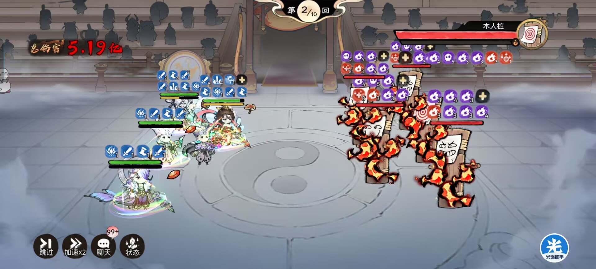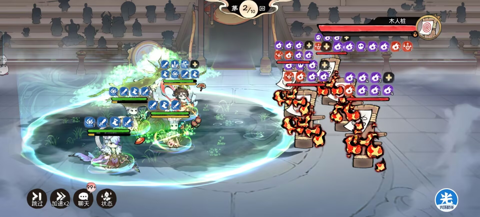 之前是可以挂24个buff,现在很多都只能挂12个buff,所以你带在多的燃烧功法你挂不上就没有用,这个狮子在之前蛊队攻略中也讲过。