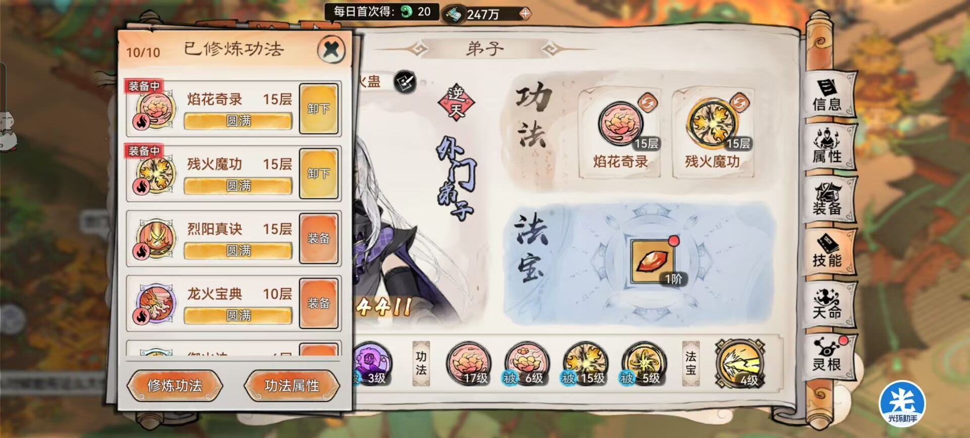 五:【平民:水火蛊】功法搭配。那么这里有玩家会问了:狮子,水火蛊法宝和功法要怎么选择?