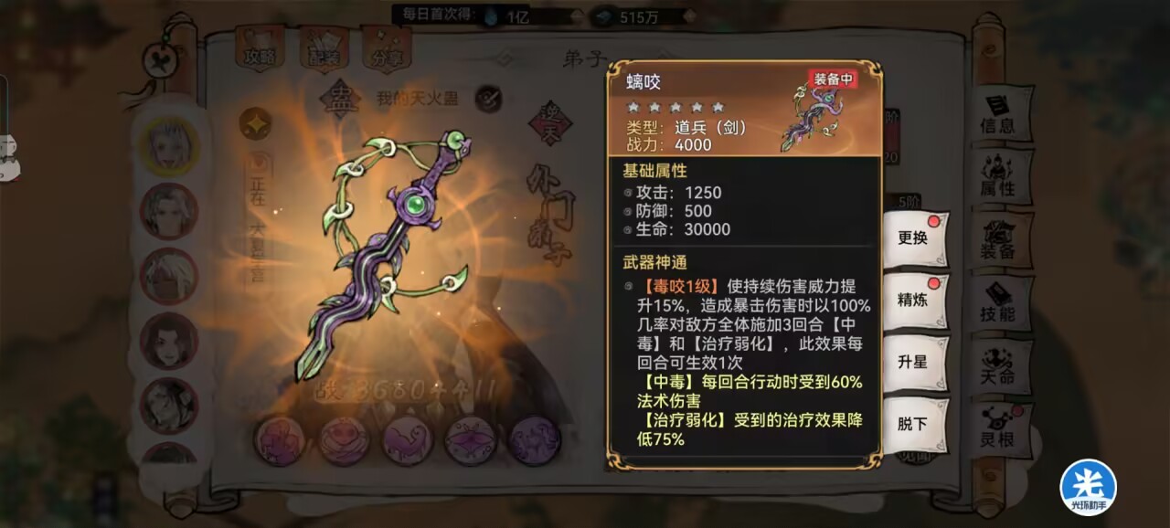 ④本命法宝推荐:四个蛊都愿意带【无常印】即可!提升持续伤害是核心。