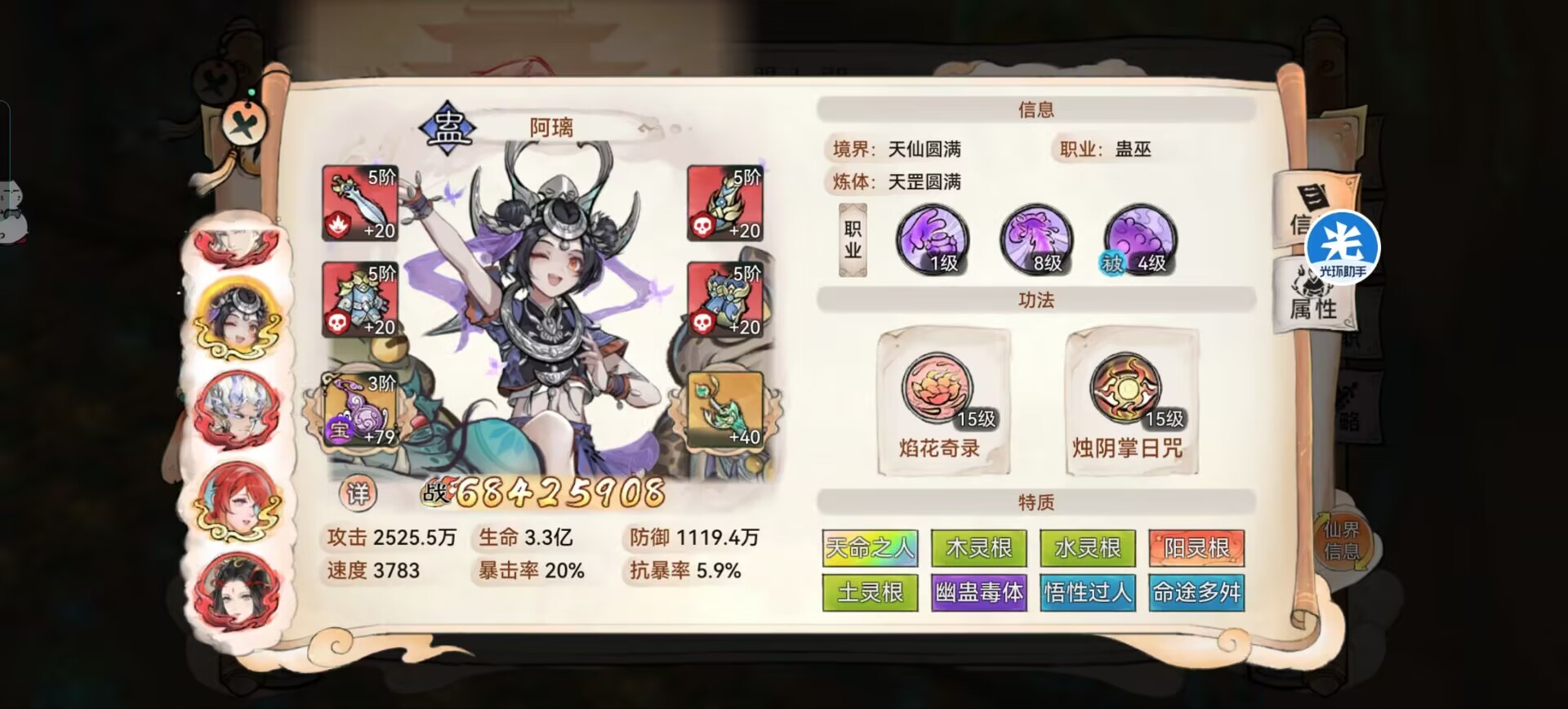 因此在自己的主力阵容天命仙三培养完以后,二队可以培养蛊队。