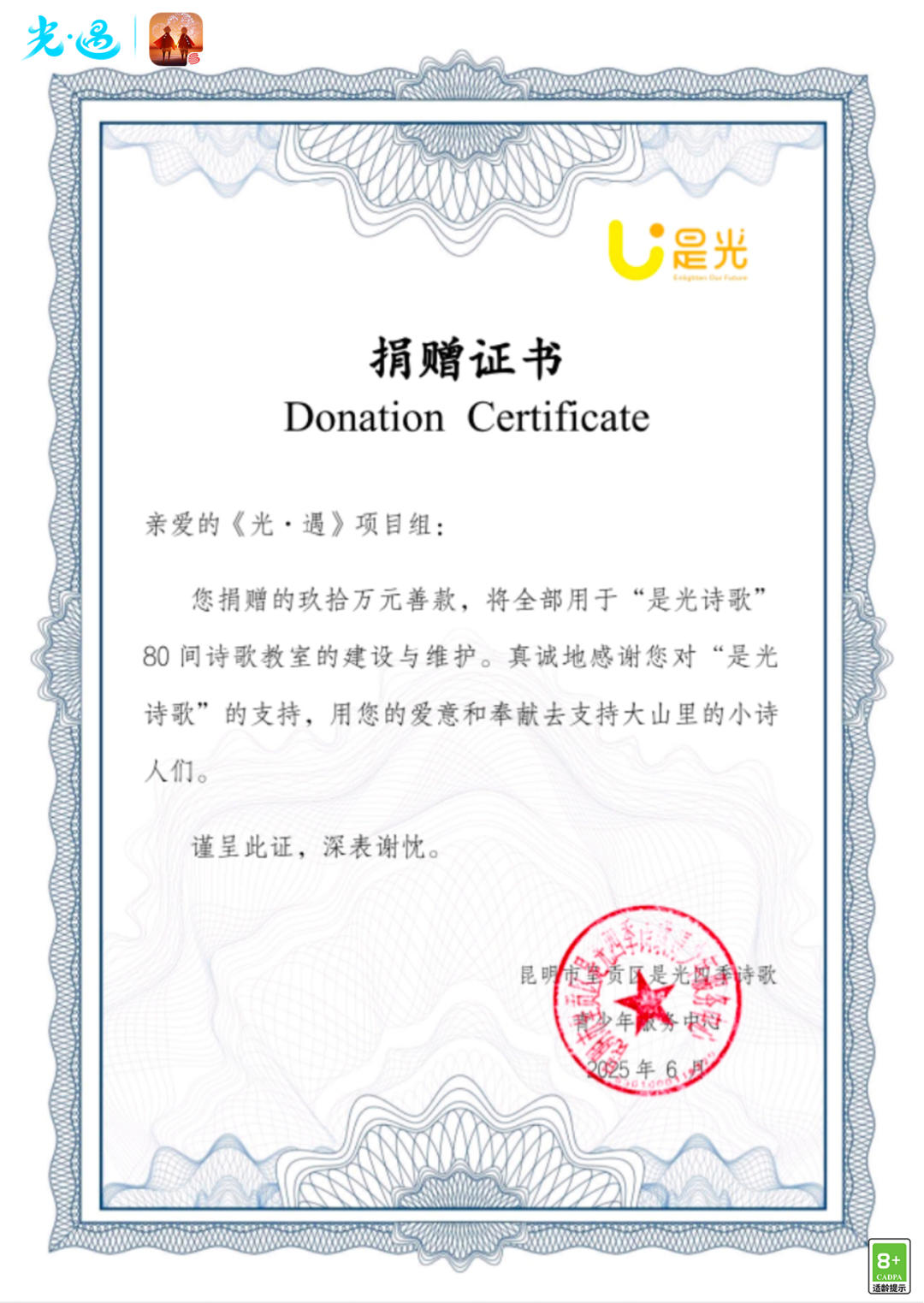 聚光成诗 温暖传递丨《光·遇》绘梦节礼包捐赠公告是泽哦发布于 06-09关注温暖的梦想,从一份善意开始绘制《光·遇》绘梦节携手“是光诗歌”发起公益合作为“诗歌教室”公益项目捐赠人民币90万元一同助力乡村儿童诗歌教育💖《光·遇》始终相信,温暖的传递不分界限在此公益项目持续的未来一年里我们将通过4次课程反馈了解孩子们的学习进度帮助更多孩子以梦为笔,描绘心中的光让他们的声音被听见、被珍视期待与旅人们共同见证这些小小诗人的成长!