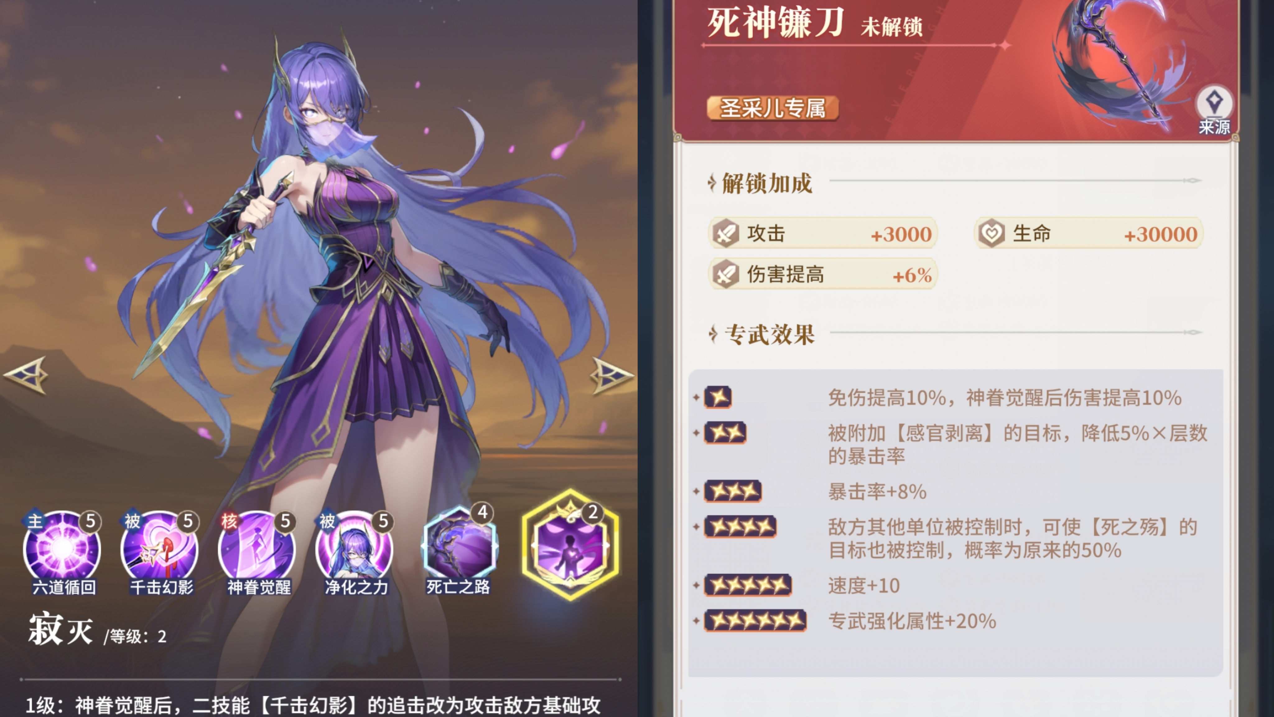 ③觉醒状态下一技能攻击的时候会额外让主c附加【死之殇】负面效果。