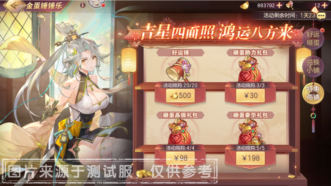吉星四面照,鸿运八方来!小将军可以在特惠商铺中获得「好运锤」。