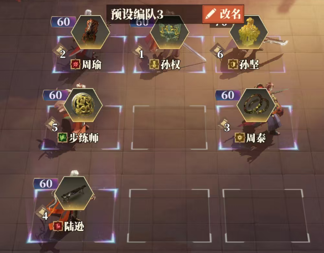 ③该阵容保底需要1火陆逊+1火周瑜。需要重点养成周瑜,周瑜5火后质变。