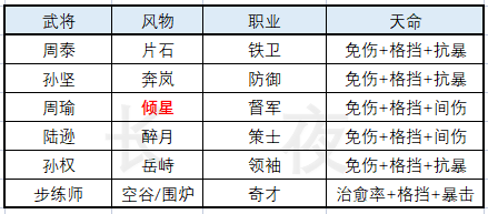 将军陆逊由于挂火基本都来源于陆逊,所以非常吃陆逊的攻击力加成;而倾星周瑜的挂火主力是周瑜,相对更吃周瑜的攻击力加成。