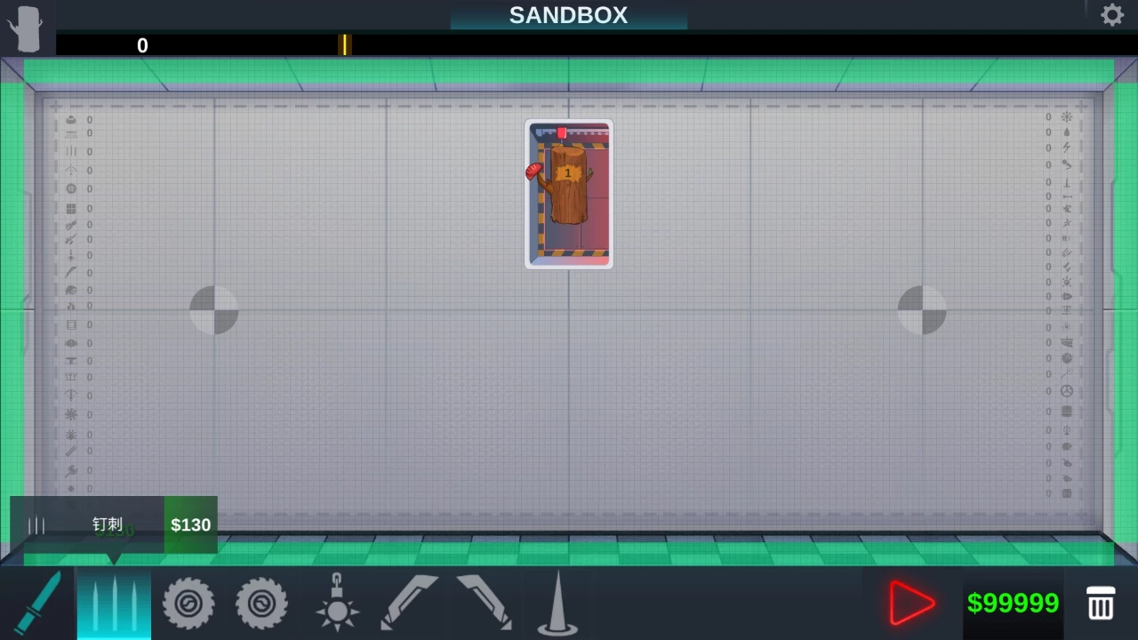 首先是近战武器,看看有钉刺,电锯,刺球,刀刃,地刺。这些东西布置在强上还是很有感觉的,特别是钉刺与地刺的配合,可以说,让木头会很舒服很舒服的承受伤害。