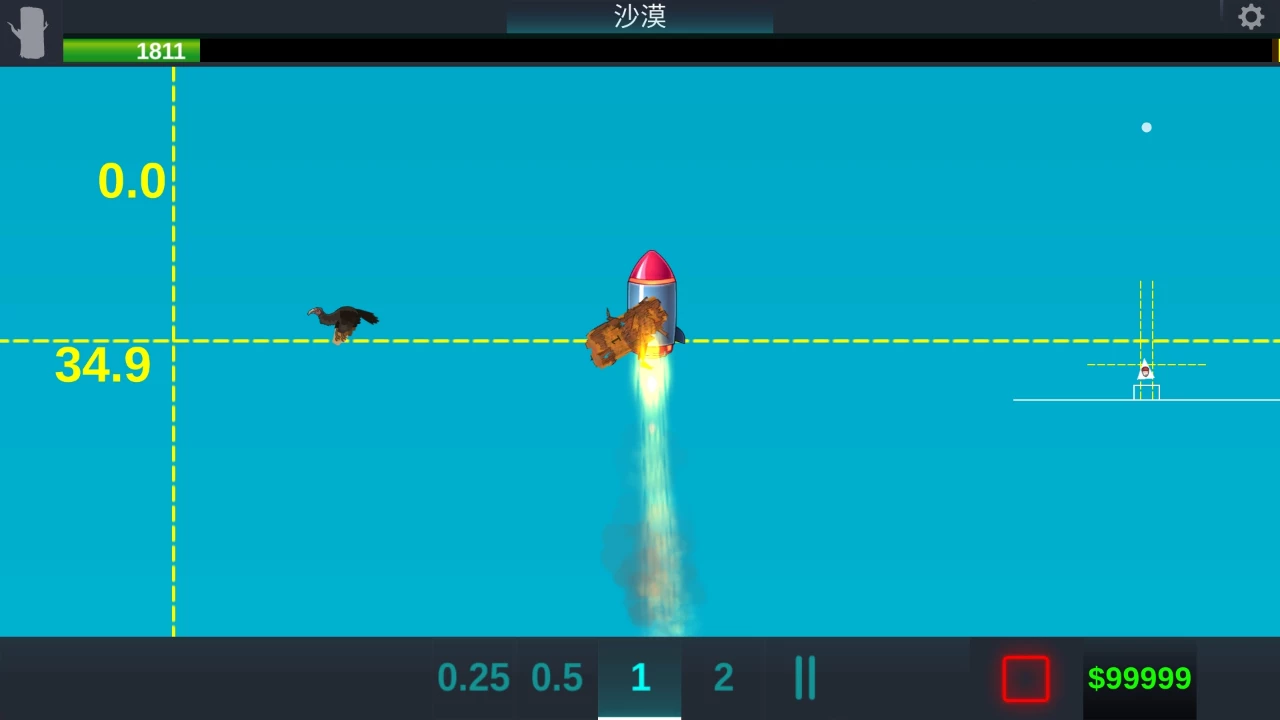 这的空间也是有不同的,不同的空间,有着不同的规则,也有着不同的模式。比如,在沙漠这个房间里,你可以用大火箭升空,然后,木头飞多高,会有测距,这是一个记录。
