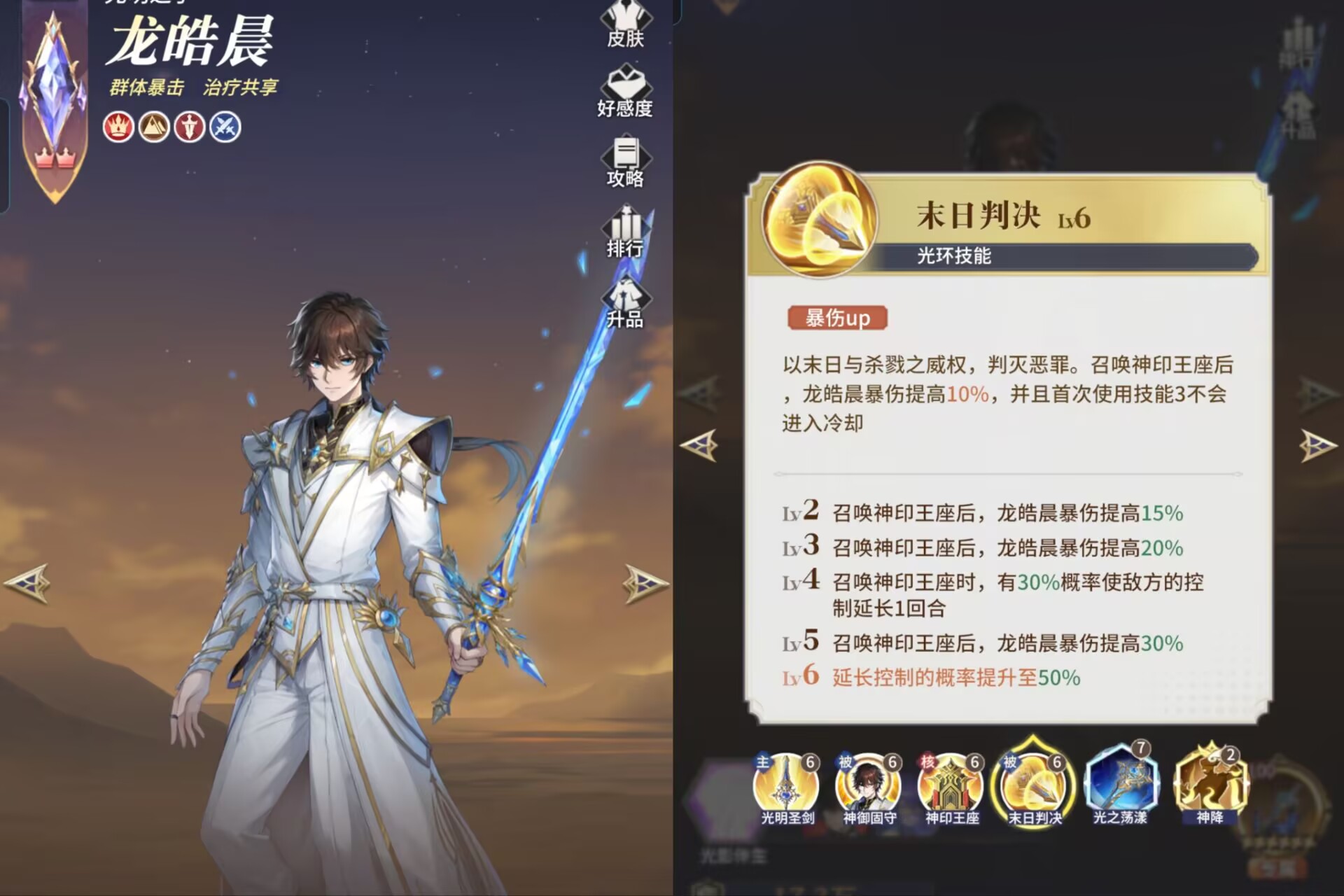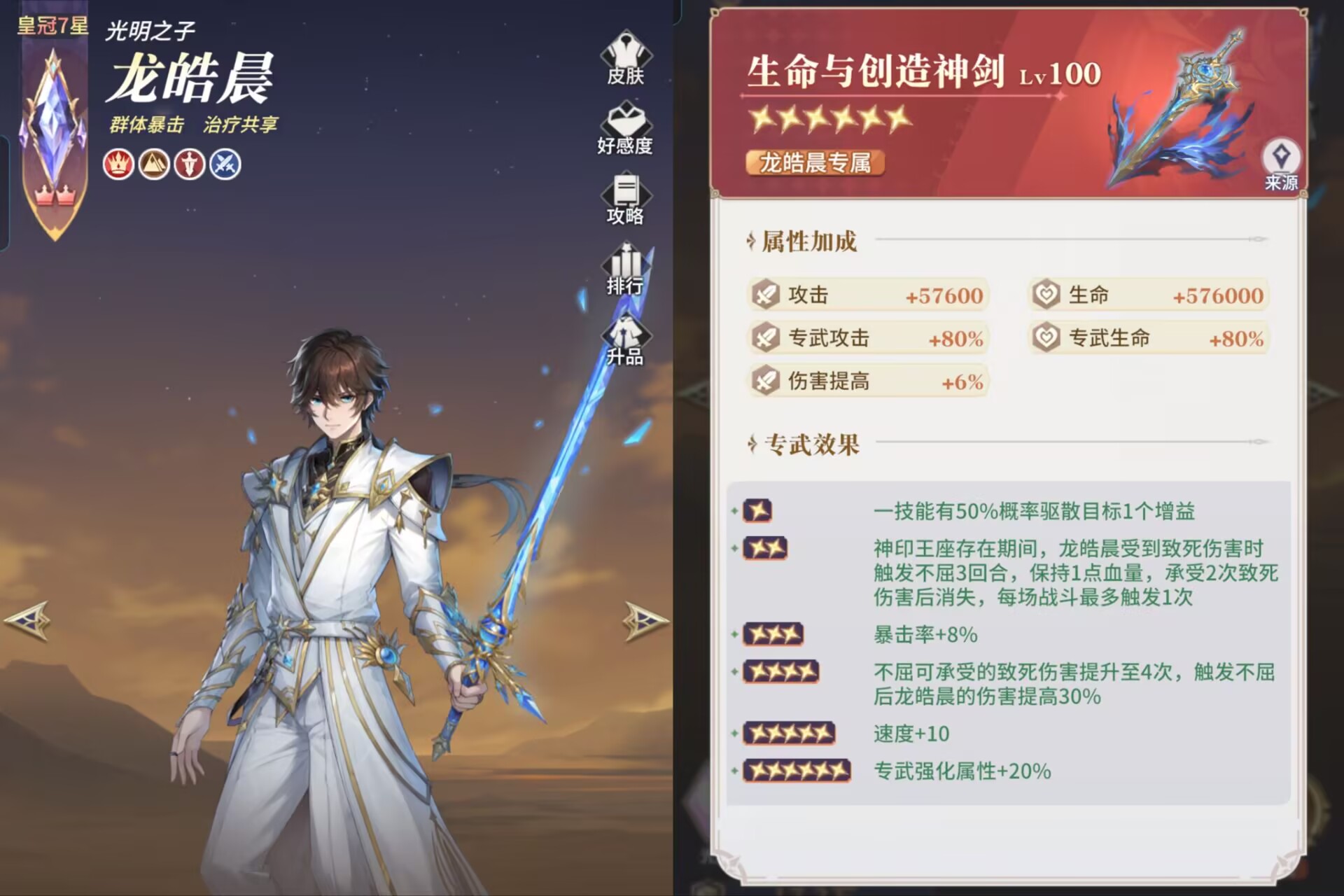 一:【龙皓晨】最佳阵容配队是什么?答:融入暴击体系(最好是有圣采儿可互相配队同时激活增伤羁绊)