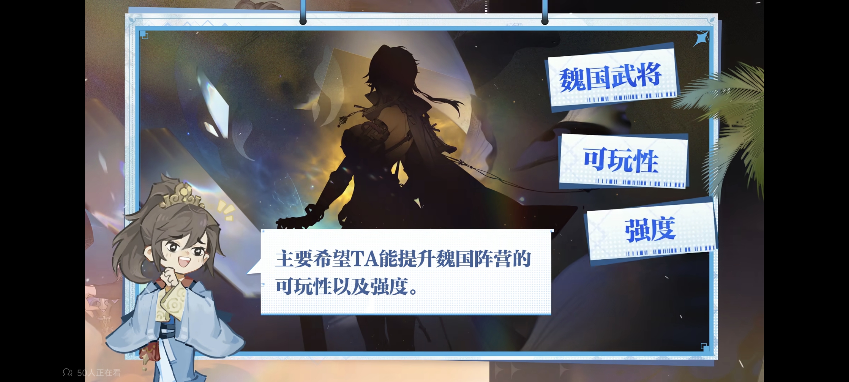 三名武将中唯一有立绘剪影的武将,已经可以确定就是魏国女将-王异了,明确说明是提升魏国阵营的可玩性和强度,那必定是契合魏国阵容的,但不一定契合女团。