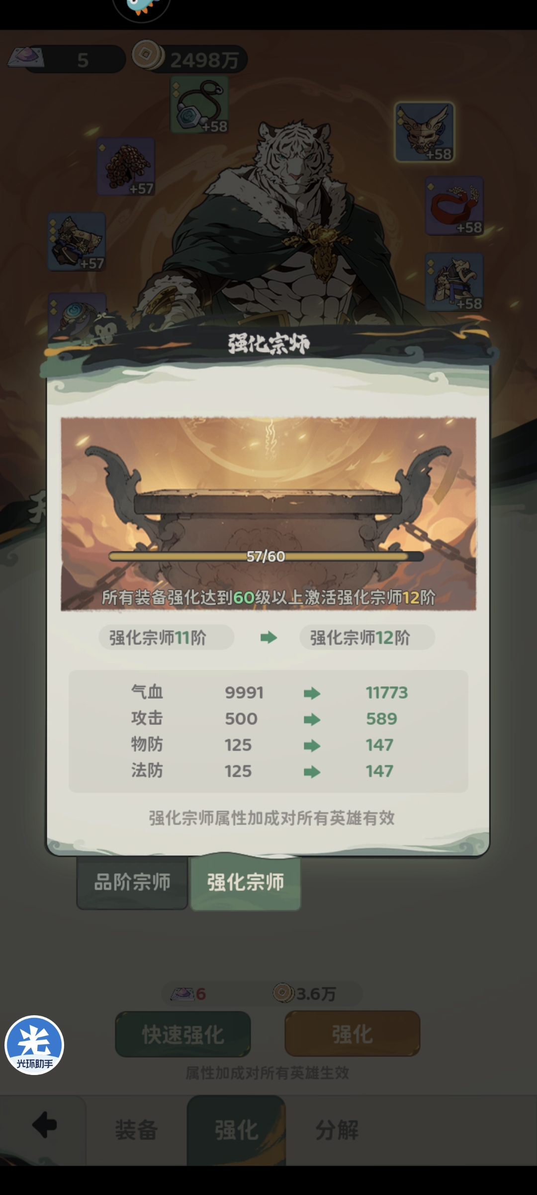 随后进行万妖巢玩法挑战(参考上方攻略)最终通关兑换2个橙色法器开启图鉴后,整合其他资源最终战力可以达到145万+