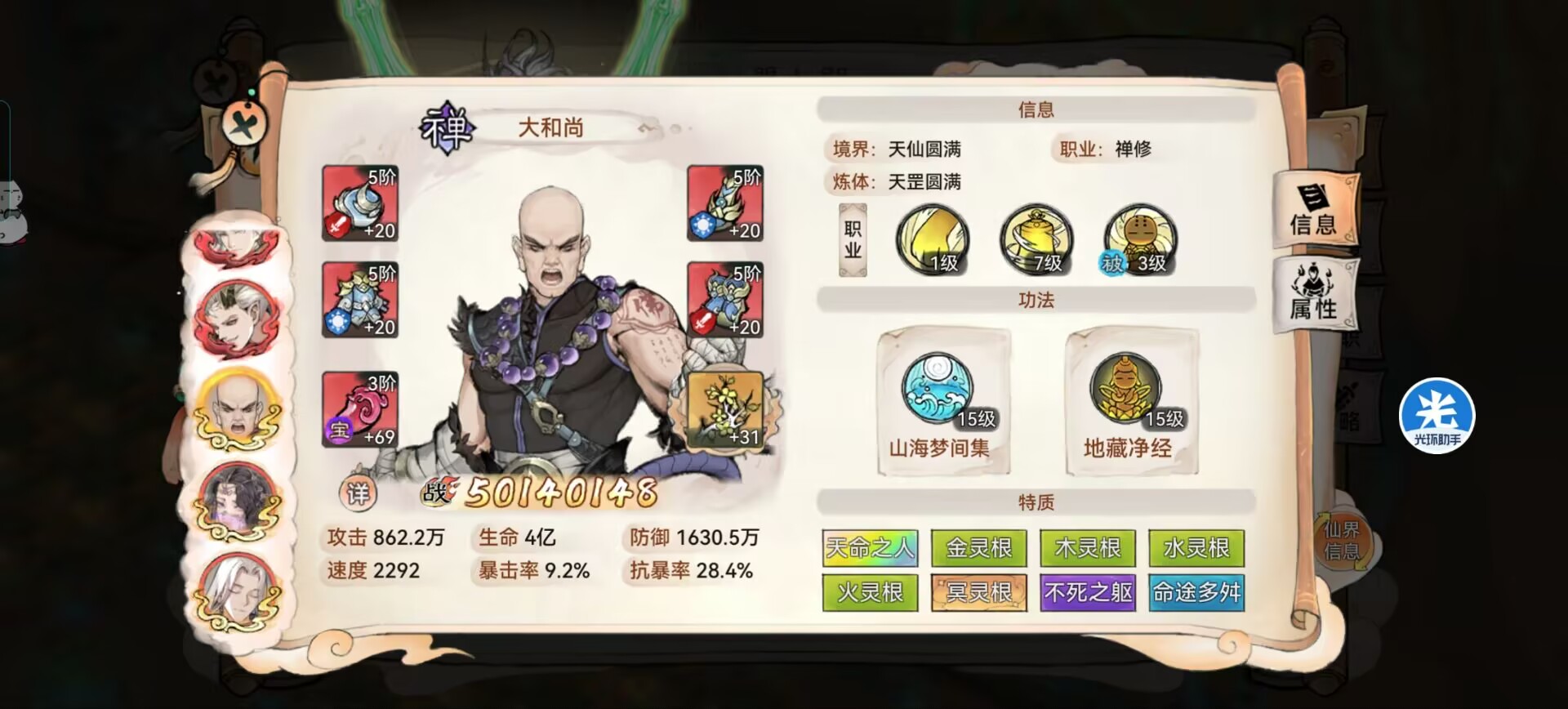 ③【禅武灵拳】给队友护盾和少量的防御和抵抗加成,只能属于锦上添花了,给的数值并不高,实战中很难有大作为。