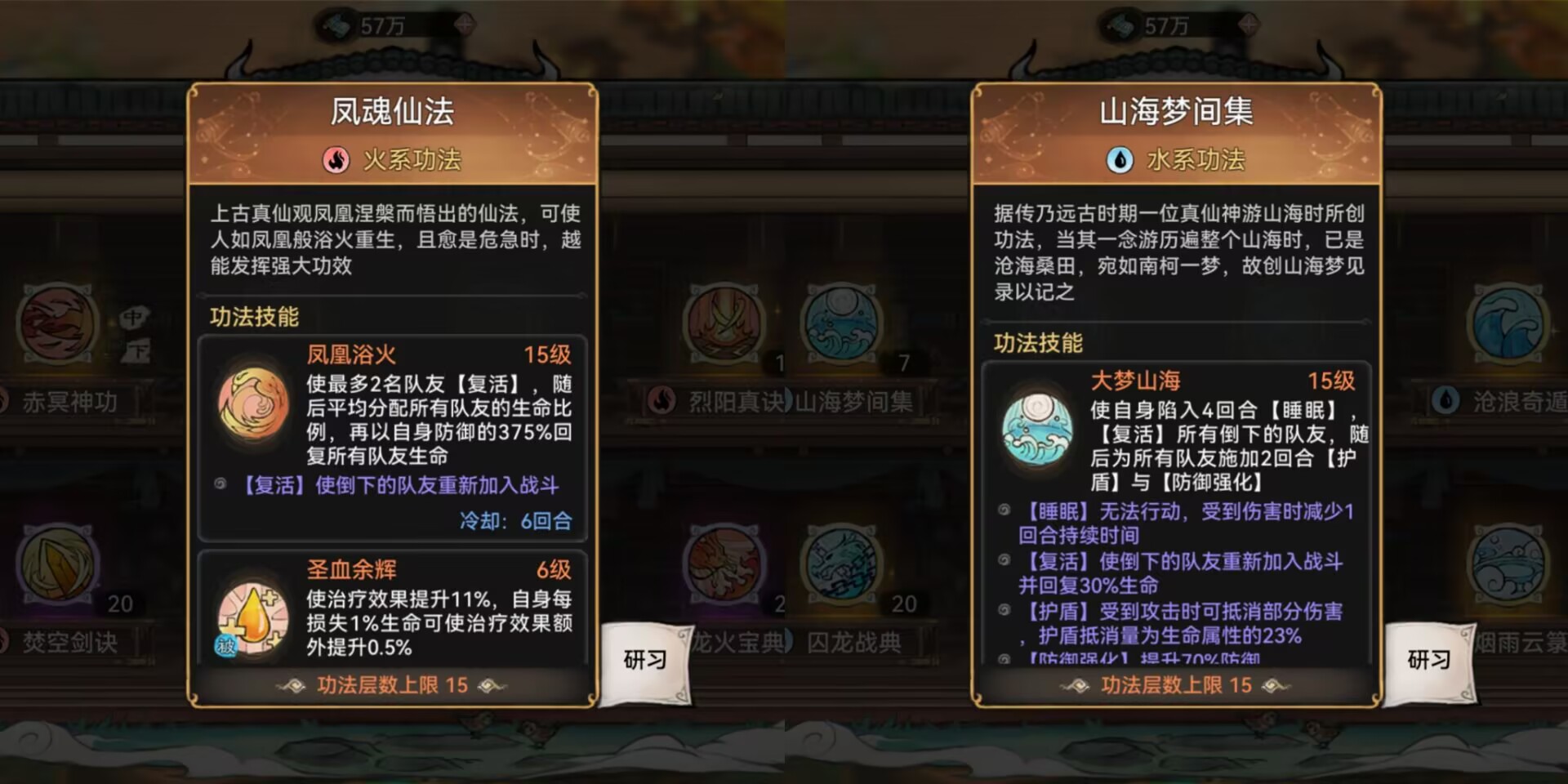 核心复活功法是:火系的凤魂和水系的山海。