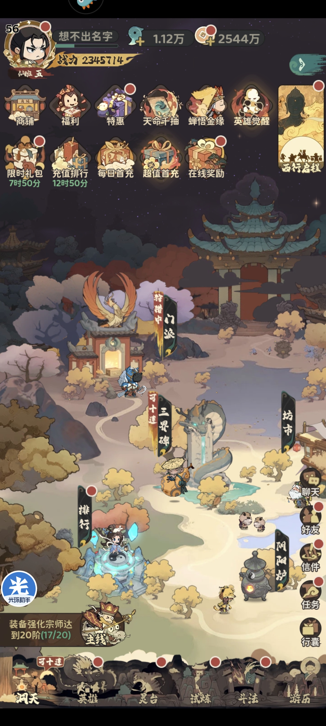 再进行商店刷新兑换,本号第四天为周一竞技场挑战更新+竞技场商店更新,商店兑换三界召唤令可以达到100个兑换降龙尊者本体可以将其升至十星(第三天千抽+西行启程兑换+商店兑换)升星突破石不足可以在西行启程兑换,剩余资源则兑换装备强化石,完成浮屠塔和骨冢闯关玩法,提升伙伴星级等级强化装备最终战力达到286万+