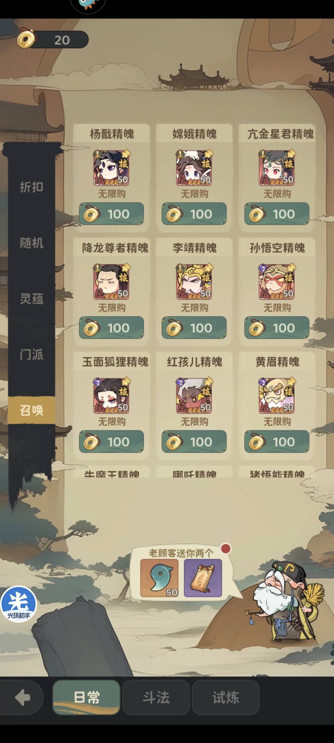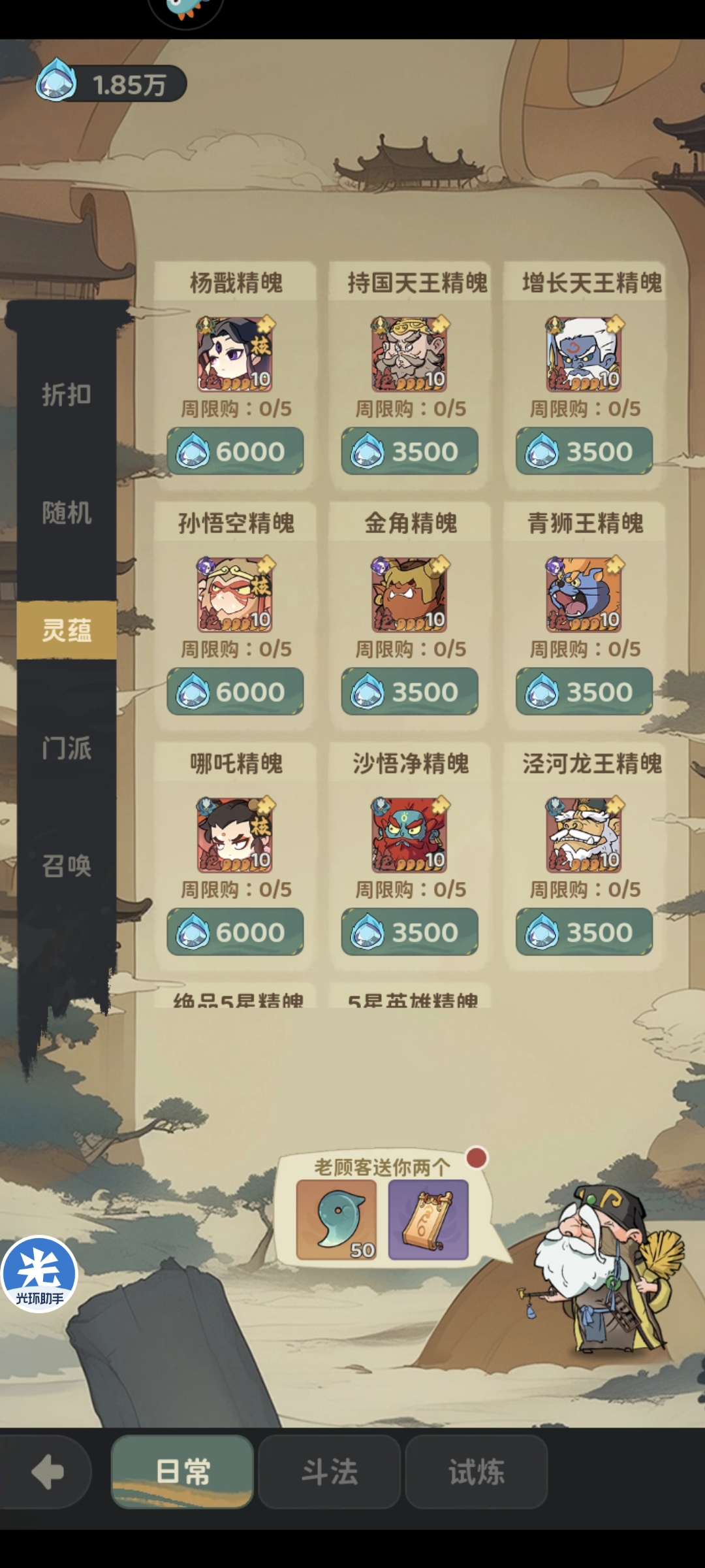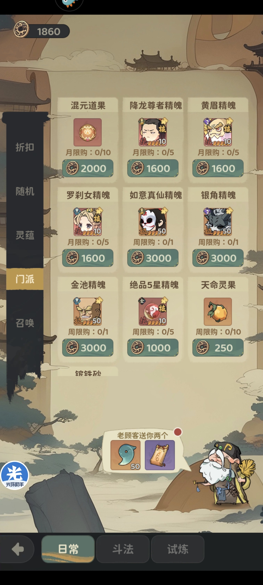 铜钱购买的除卓品碎片外所有资源+6折以下登仙散+4折/5折三界召唤令+奇遇刷新券+试道文牒