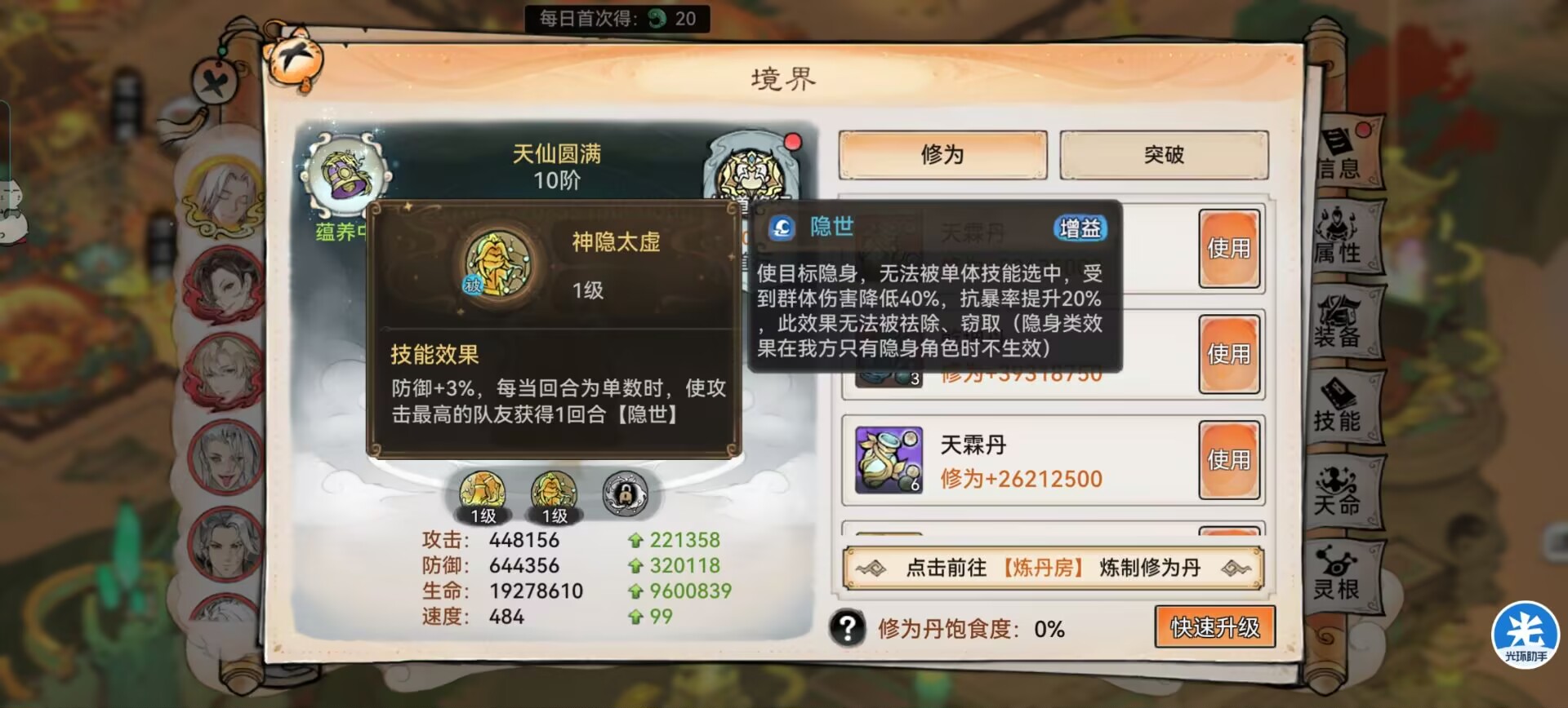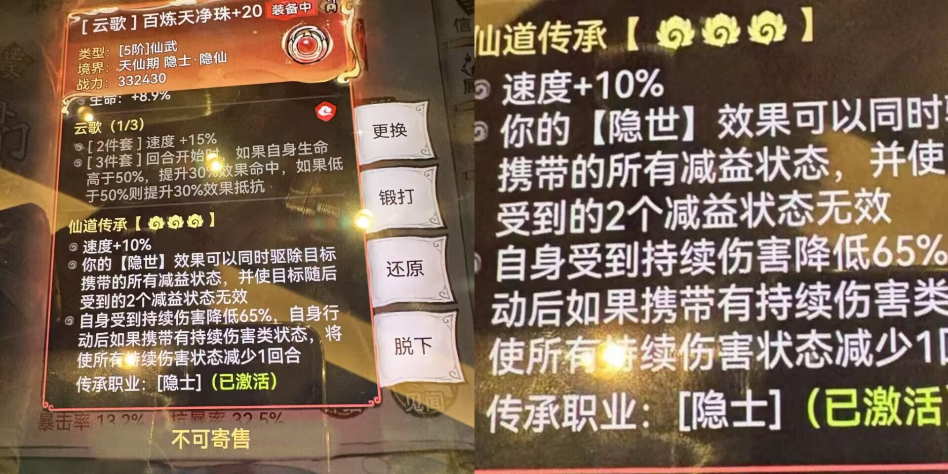 凝练二阶:让原本只能降低伤害的【隐世】效果还附加了驱散能力!大大提升了仙隐的就业率直线提升了仙隐的强度。