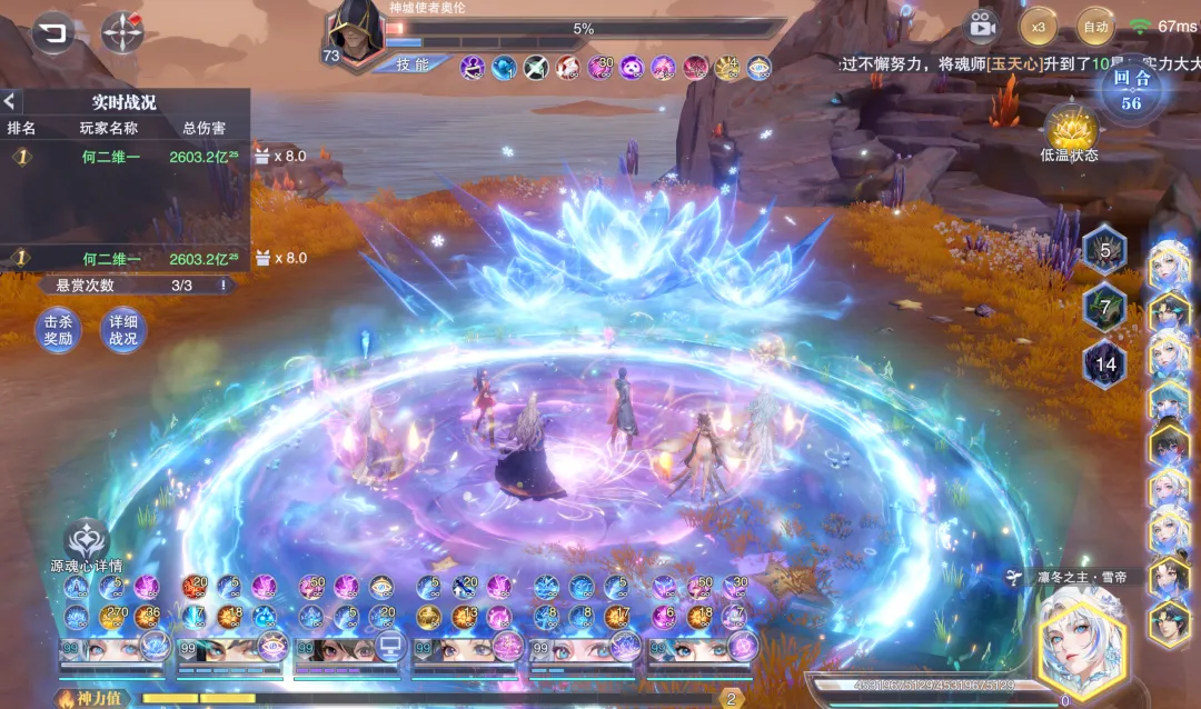 首先我们用SP冰帝的阵容打5桩敏攻系boss,其阵容的平均伤害大概可以达到5亿²⁶左右,这个伤害数据大家可以先行参考一下。
