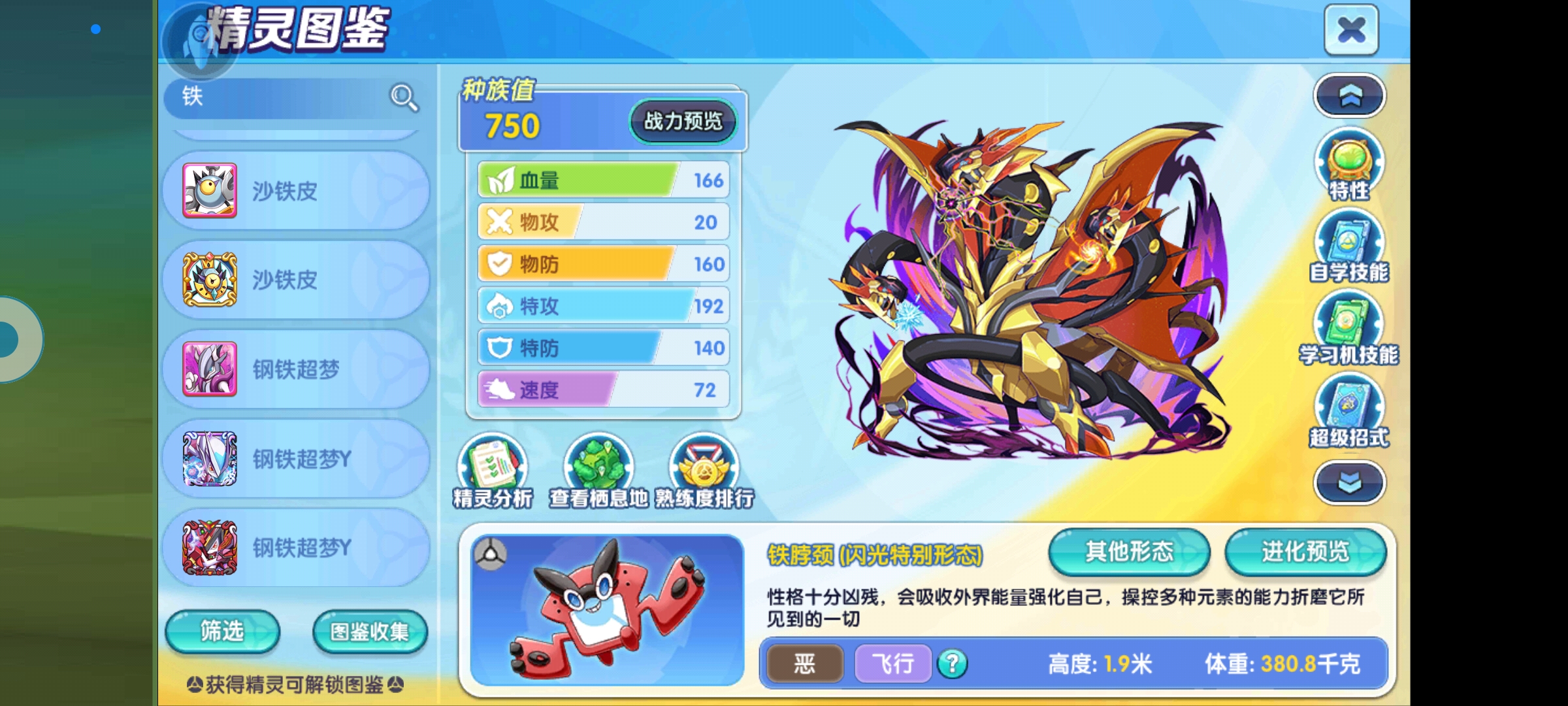 它是恶和飞行属性精灵,比较怕妖精属性,可以给它搭配个地鼠,专门捉了妖精系的精灵,让队友处理,给铁脖颈创造良好的输出环境,还有就是奈克洛兹玛,除了究极的,闪光的上次也十连也给了白嫖机会,新捕虫也可以白嫖,这个可以给铁脖颈开骗术获得先手,也是铁脖颈不错的队友选择。