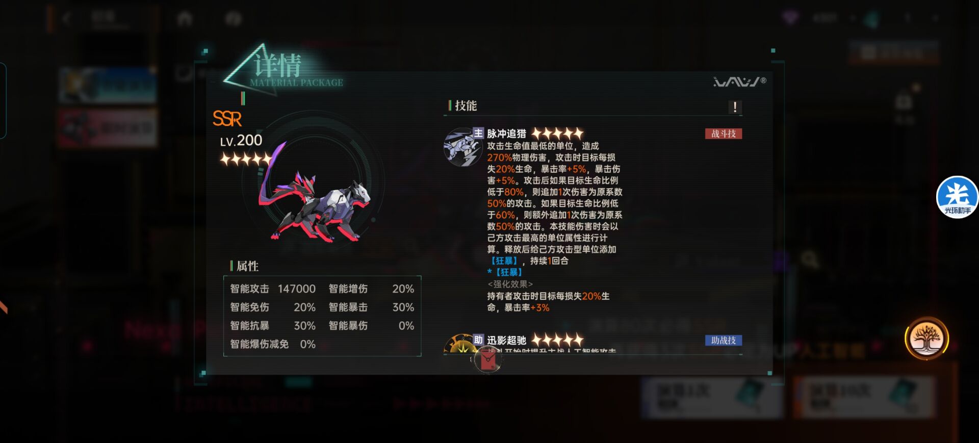 本次登场了2个新的人工智能分别是:【ssr扭矩解算】和【srVolant】。
