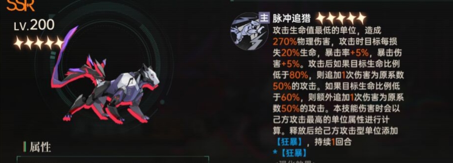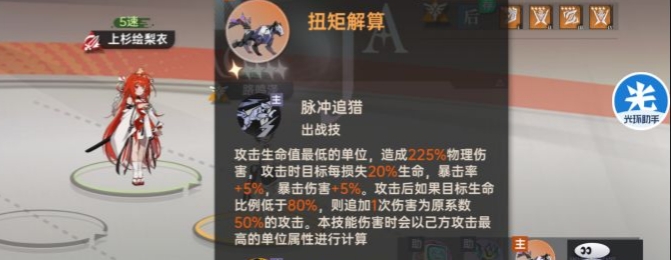目标生命每降低20%,本次攻击可以提升5%暴击和5%暴伤,也就是说目标的生命越低造成的伤害就越高。