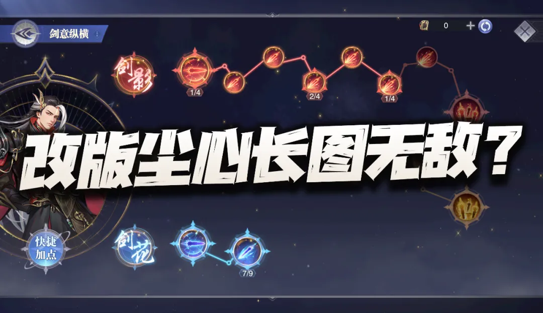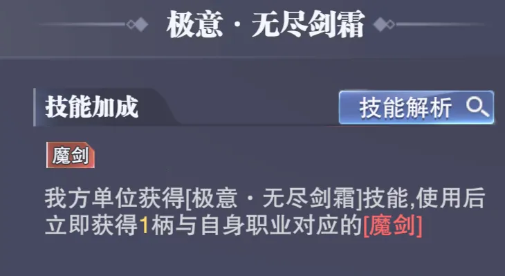 首先经过多日的实测,维一个人感觉SP+尘心在长图的加点上,其实在蓝色“剑花”这个分支里的“寒风·出鞘”和“极意·无尽剑霜”这两个加点非常重要,因为“极意·无尽剑霜”这个分支可以给所有队友提供一个“极意·无尽剑霜”的技能,而这个技能则可以让所有队友(包括SP+尘心)在使用后获得额外1柄魔剑,而且使用这个技能时非常节约时间,几乎没有任何动画停顿,所以在大面积使用此技能的前提下,我方回合的轮转效率也会提高不少,相应也能提升SP+尘心的输出机会。