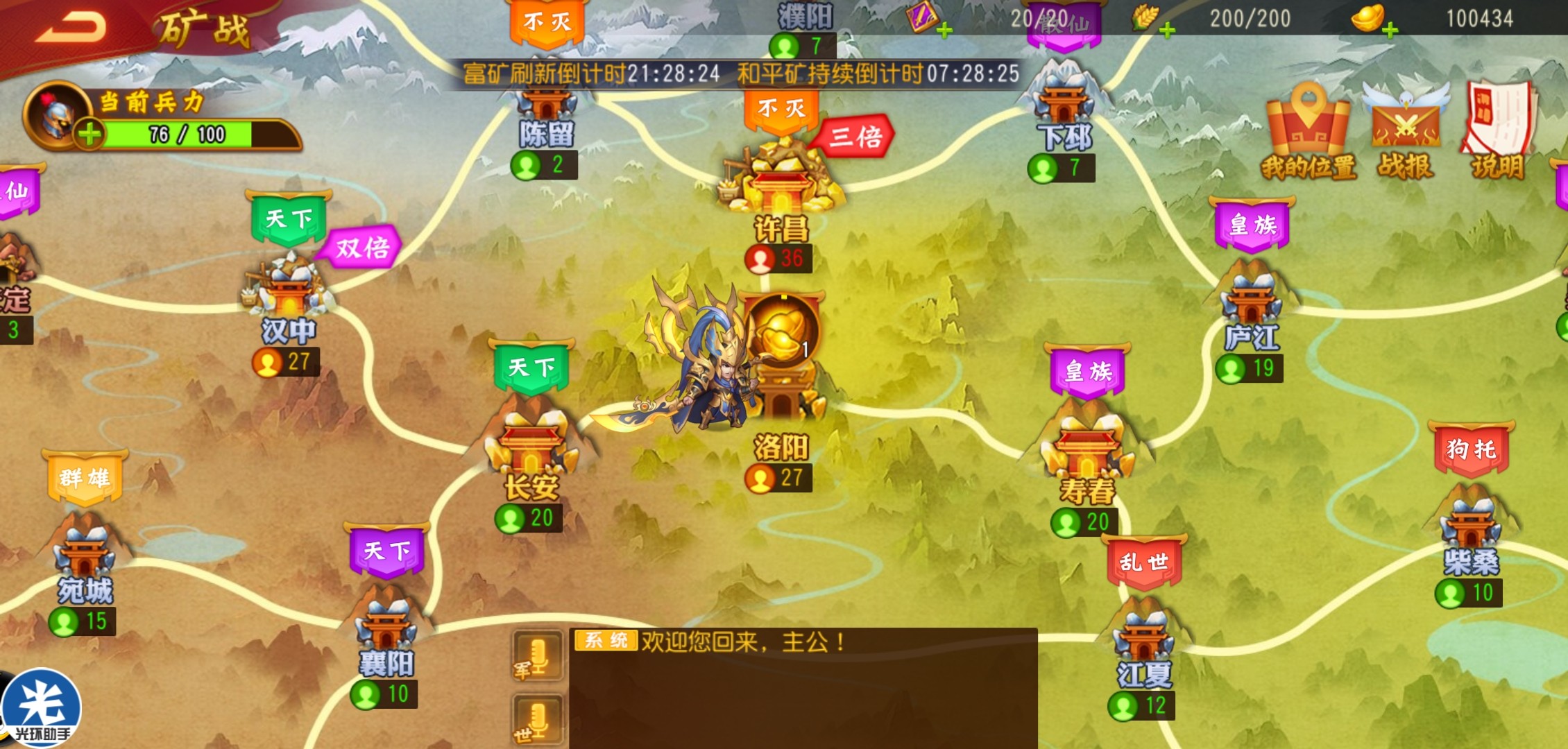 不要贪占矿的几百元宝,跑到离主城很近的城池占矿,包括和平矿。矿战就是消耗对方、保存自己,占领近主城的矿区,对方高战可以不消耗太多粮草就将你清杀回城,所以有粮草也不用去近城,多存下粮草,跑黄金矿,碰瓷对方高战,充分利用攻击令。