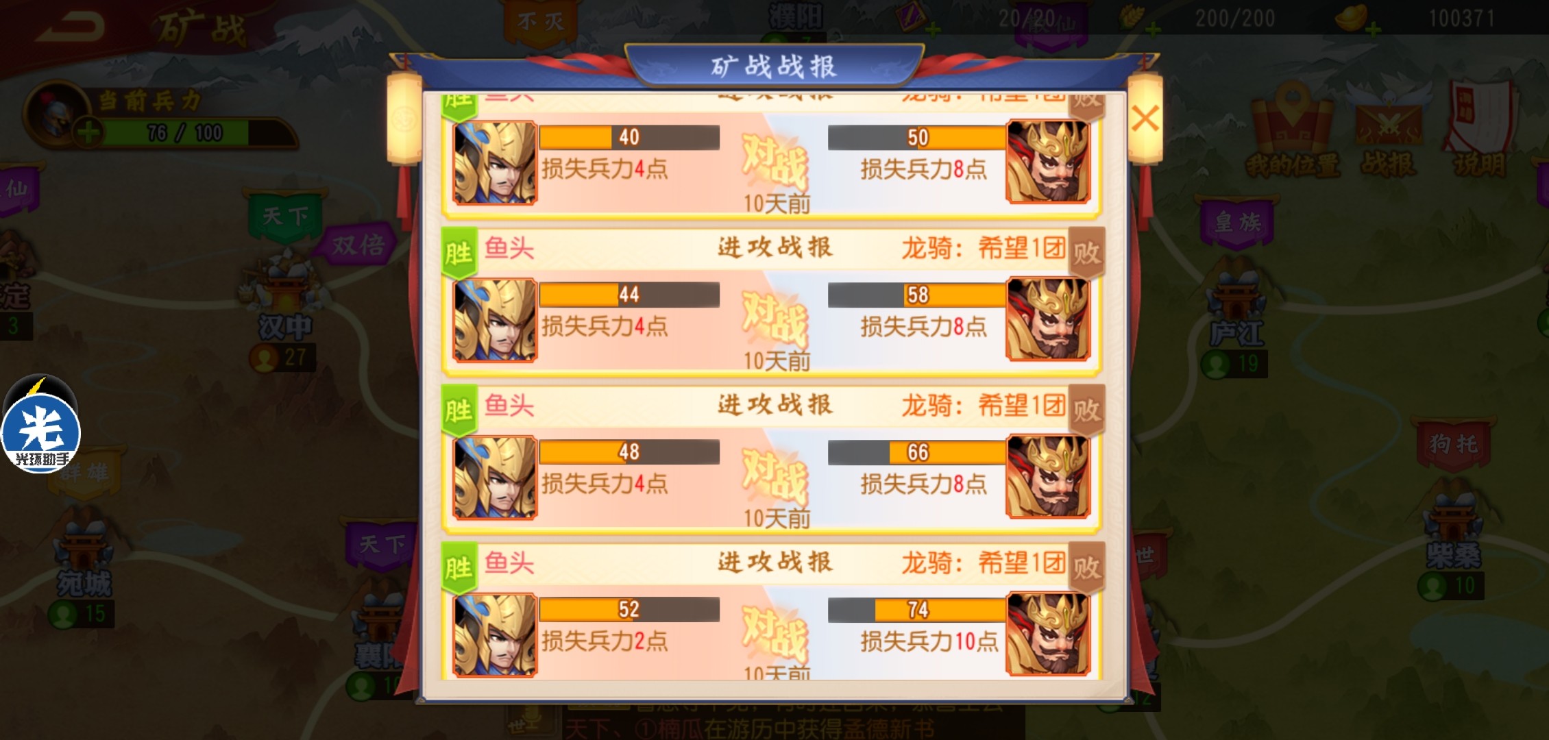 同样的玩家,在胜负条件一样的情况下,如果矿战中损失武将则损失更高的兵力,没有损失武将只损失2点兵力,当损失武将后则损失4点兵力。