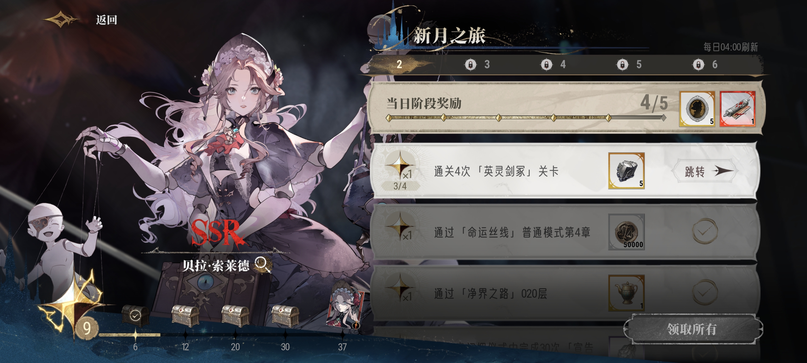 轻松把第一层4关全部打通,获得500月之啼+3抽+1个未来遗产。