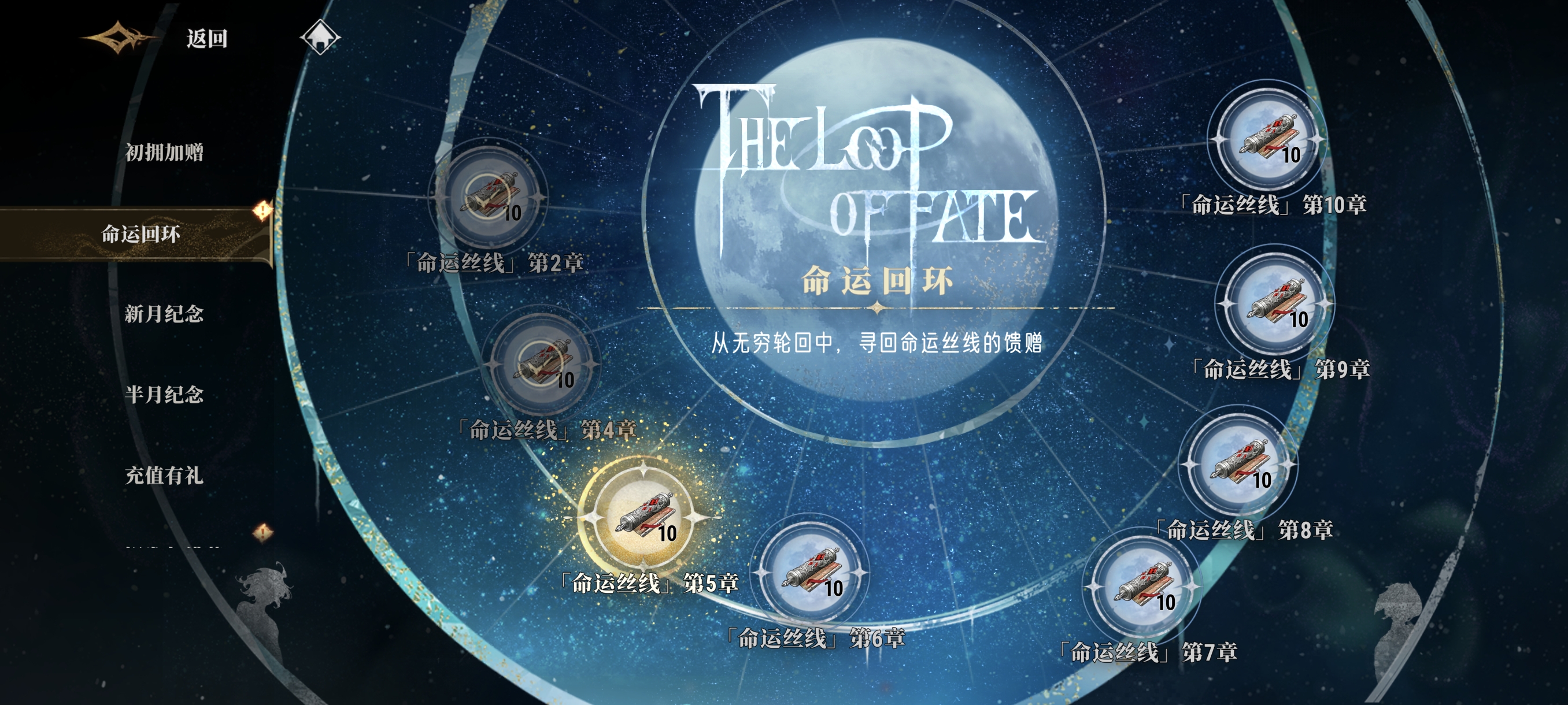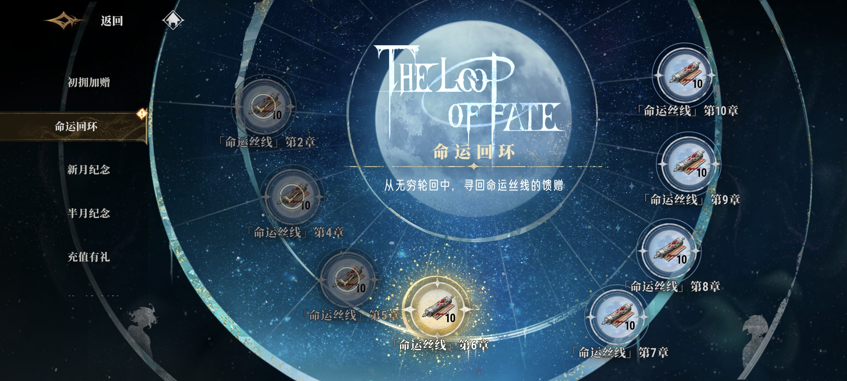 推图到卡住为止,领取命运回环的十连,加上月之啼凑齐今天的第3-4次十连抽,虽然又没出红,但总算凑齐了150累抽,拿到第一个SSR自选箱。