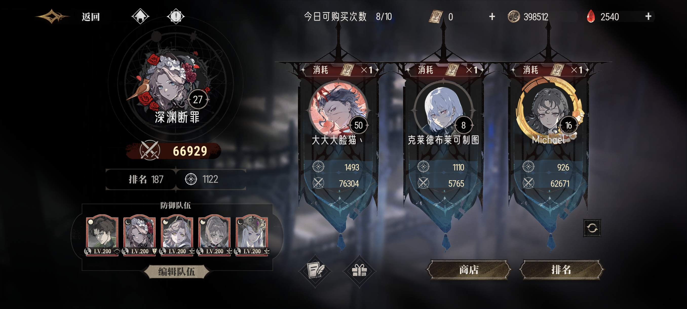 养成材料可通过魂契商店购买,除了第一天阵容没成型比较缺英雄外,后续的资源尽量换成仪式养成材料,提升队伍属性。
