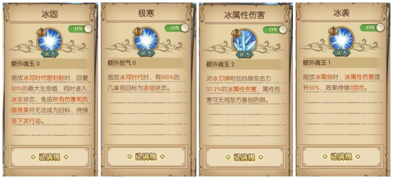青雉的面板属性的提高的天赋。并首回合给敌方全体人员附加一层冰封效果(减速减攻击减防御效果)。开局8魂玉。